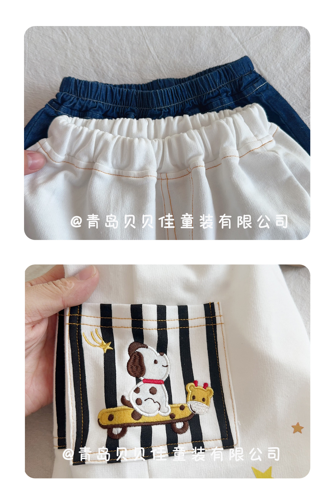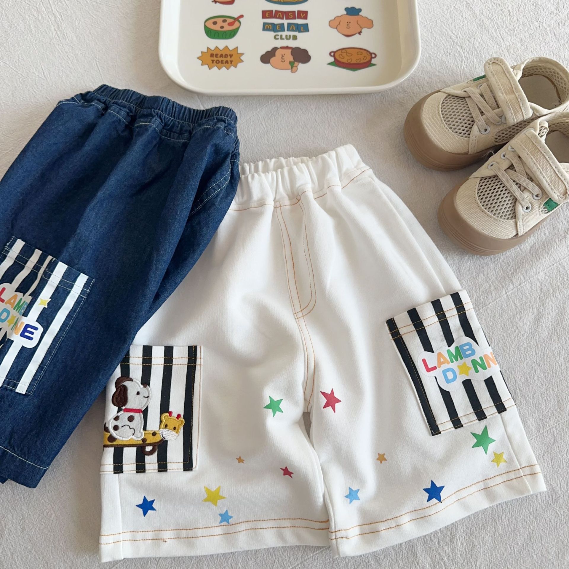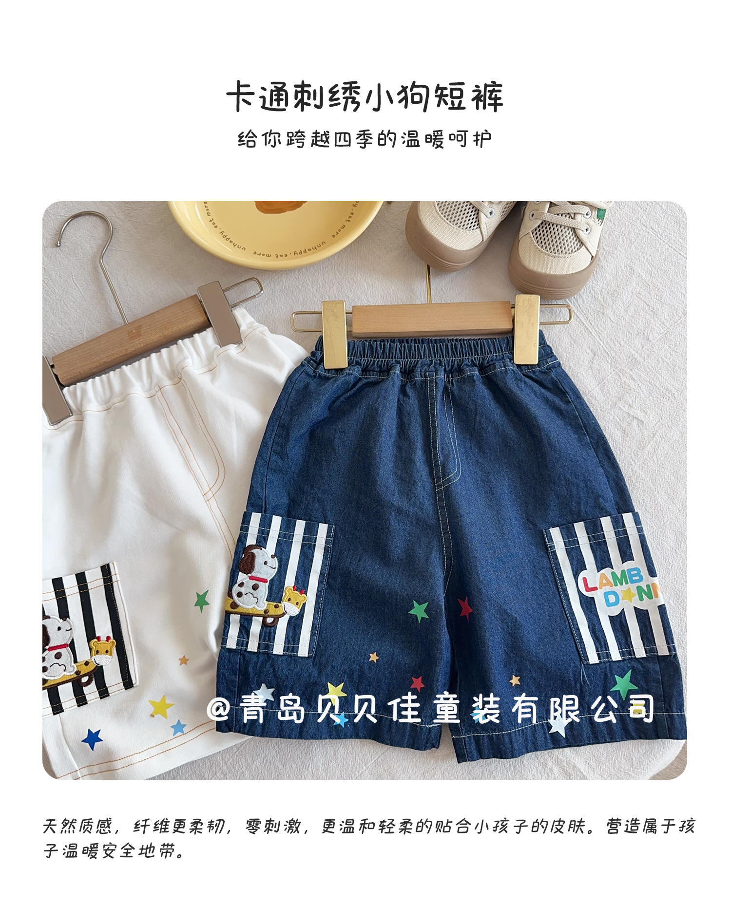• 1676 만화 수 놓은 강아지 반바지 흰색