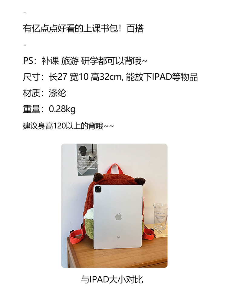 귀여운 만화 캐릭터 백팩 여자아이 여우 토끼 봉제 가방 대용량 어린이 책가방 지리지 않은 시간들스토어 가기