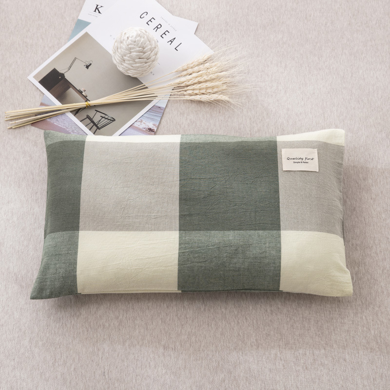 • 피부 친화적인 면 베갯잇 - 아쿠아 그린 그리드