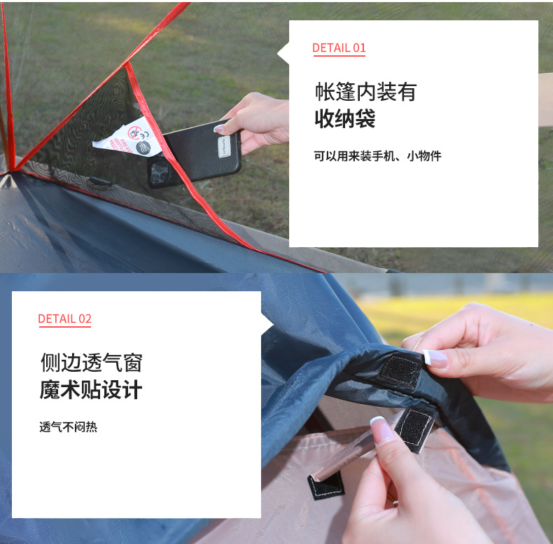 탐험가 야외 캠핑 지상 텐트 싱글 접이식 캠핑 초경량 모기장 방풍 및 자외선 방지 텐트스토어 가기