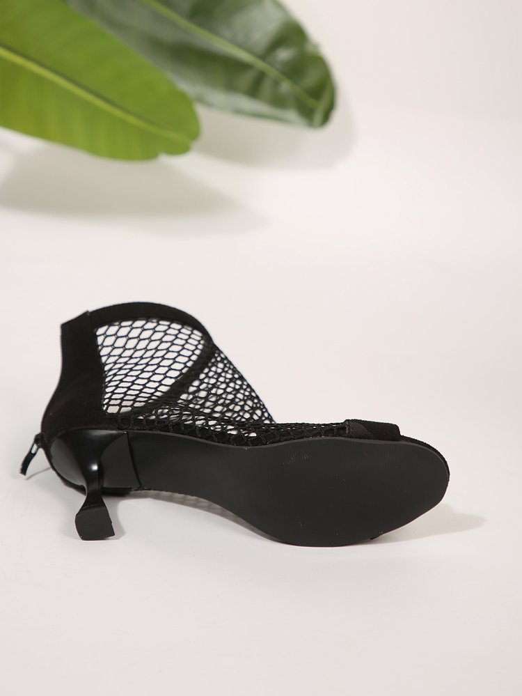 대외 무역 여름 새로운 스타일 유럽과 미국 스타일의 여성용 피쉬 입 샌들, 뒷 지퍼, 대형 통기성 메쉬 샌들, 여성용 하이힐 샌들