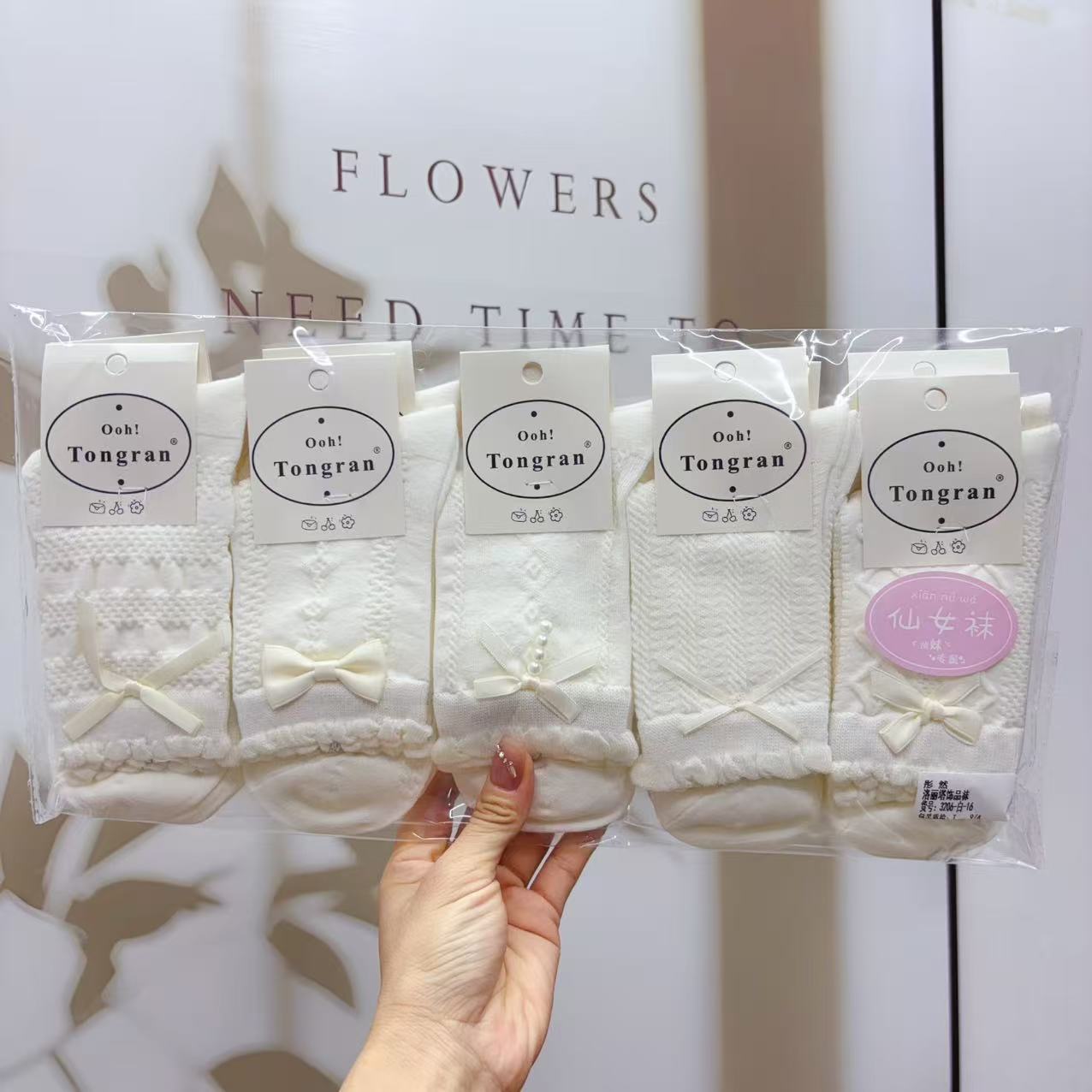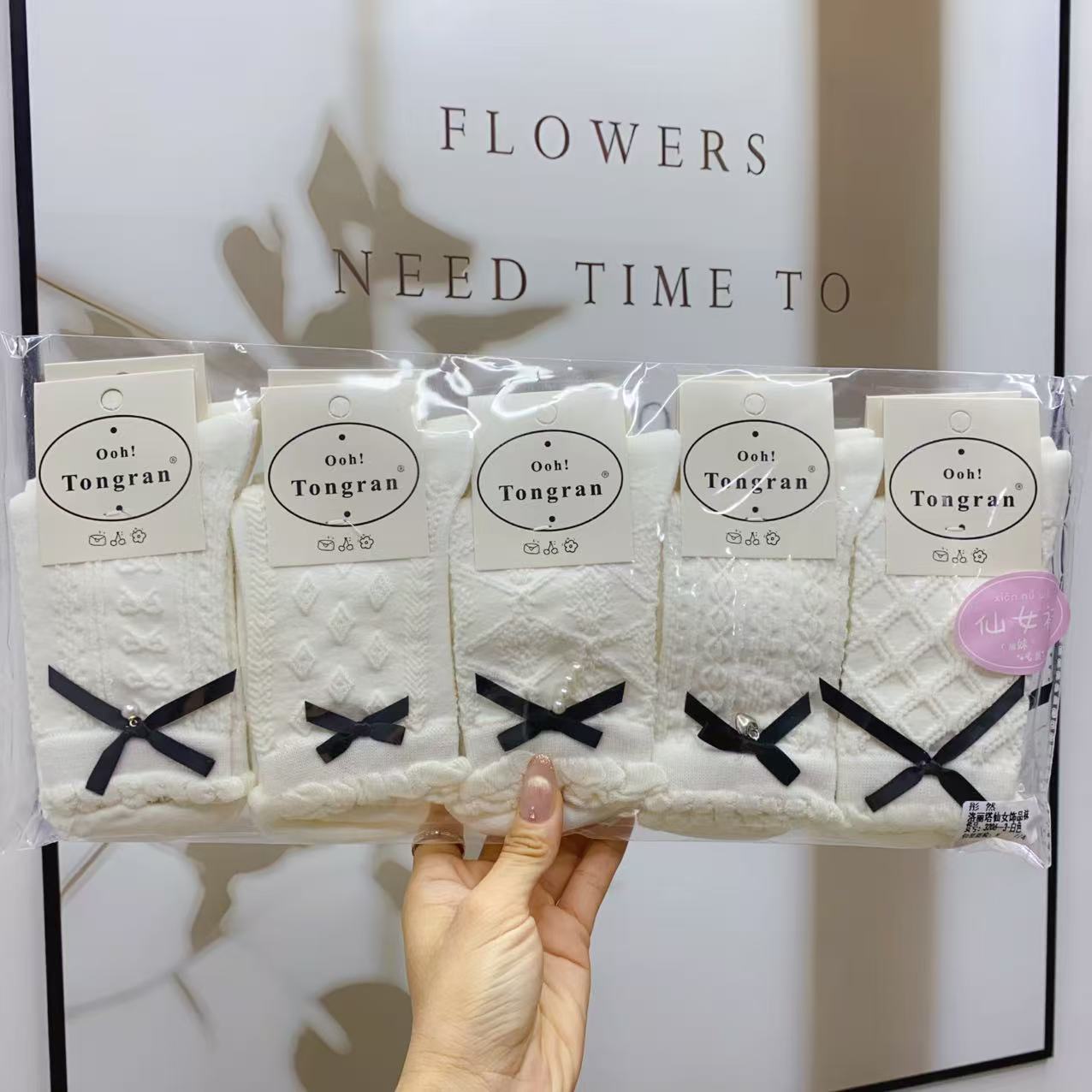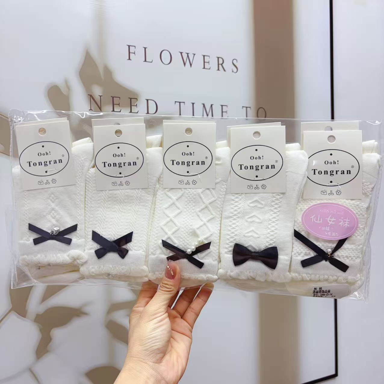 통란 로리타 요정 양말 중간 길이 양말 통기성 달콤한 여성 양말 리본 장식 양말 패셔너블하고 귀여운 면 양말스토어 가기