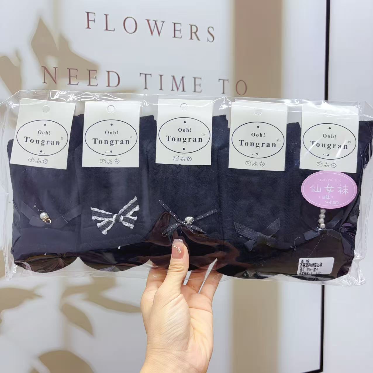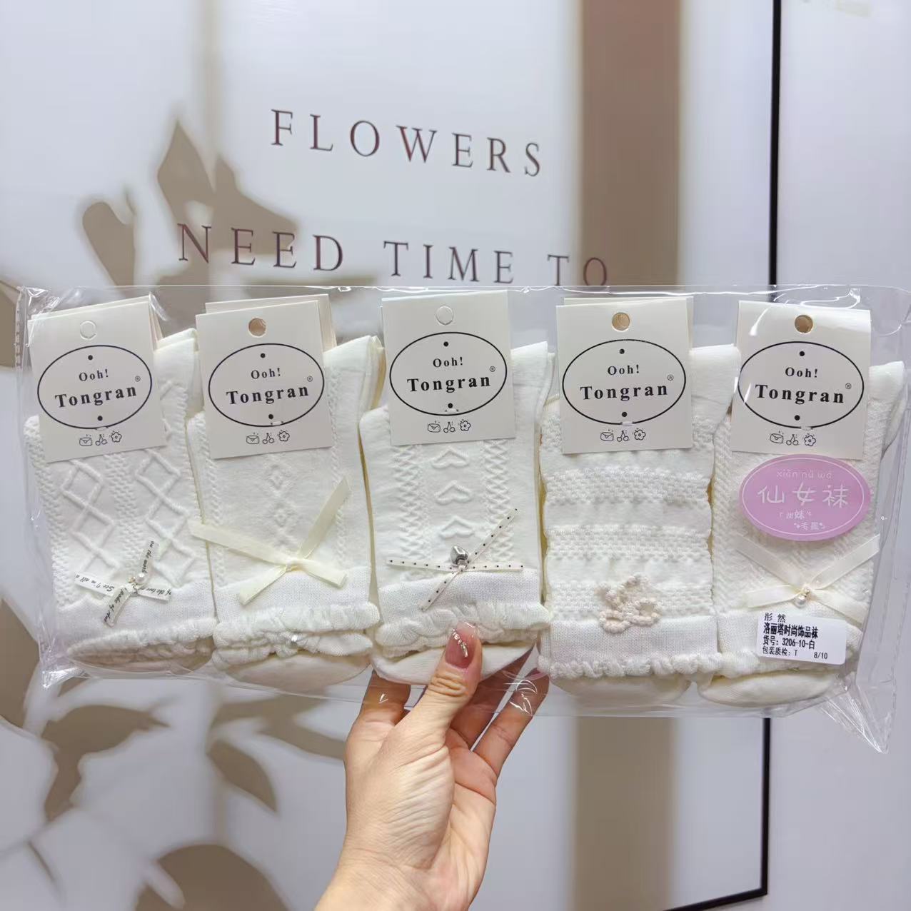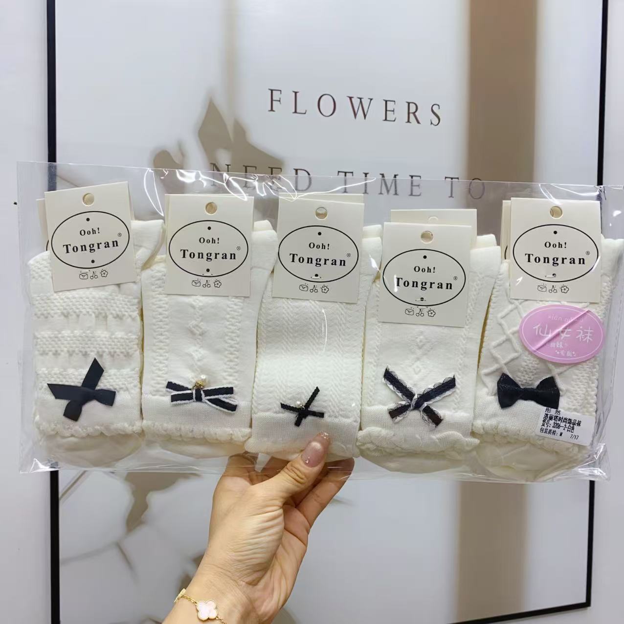 통란 로리타 요정 양말 중간 길이 양말 통기성 달콤한 여성 양말 리본 장식 양말 패셔너블하고 귀여운 면 양말스토어 가기