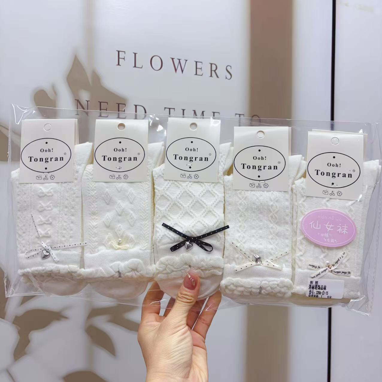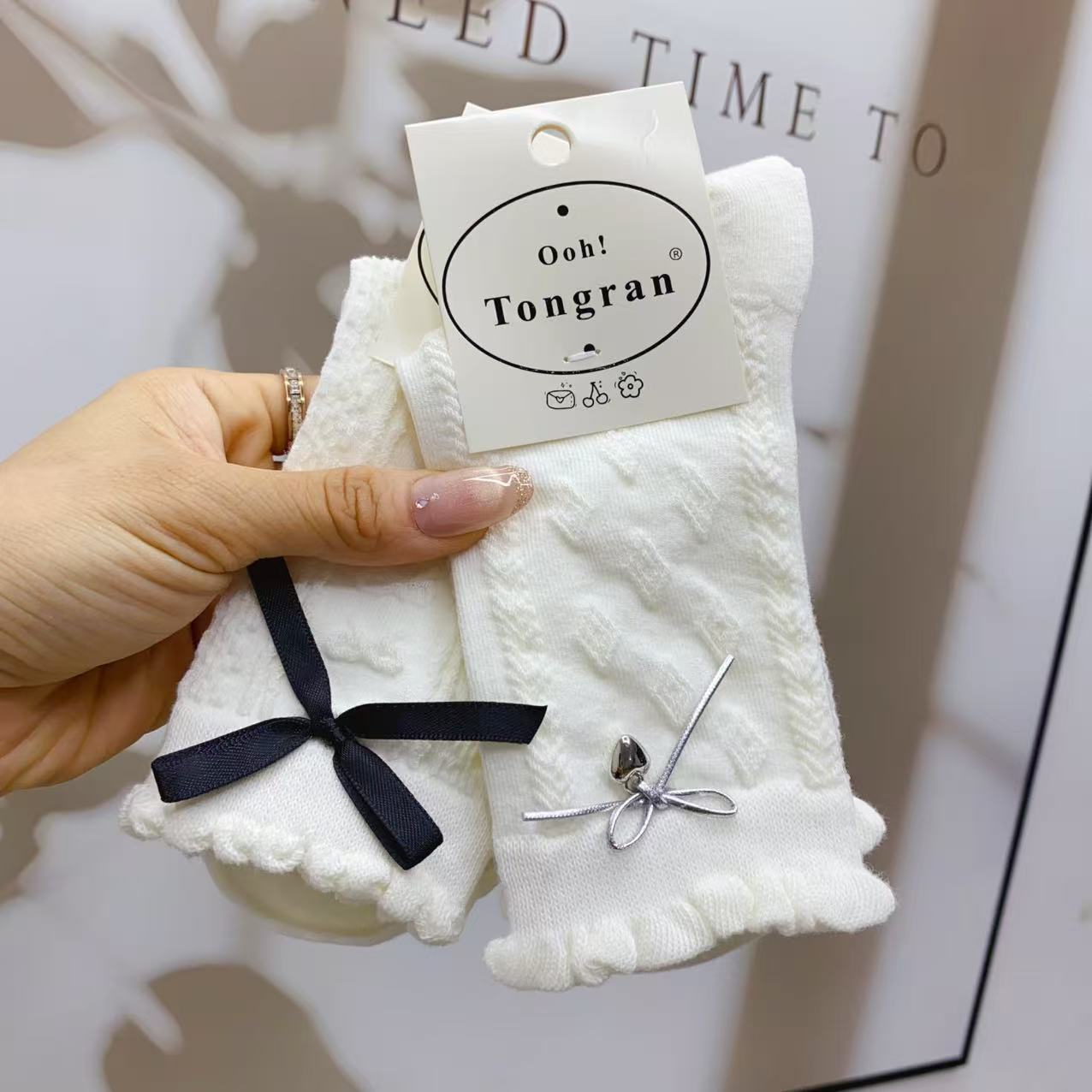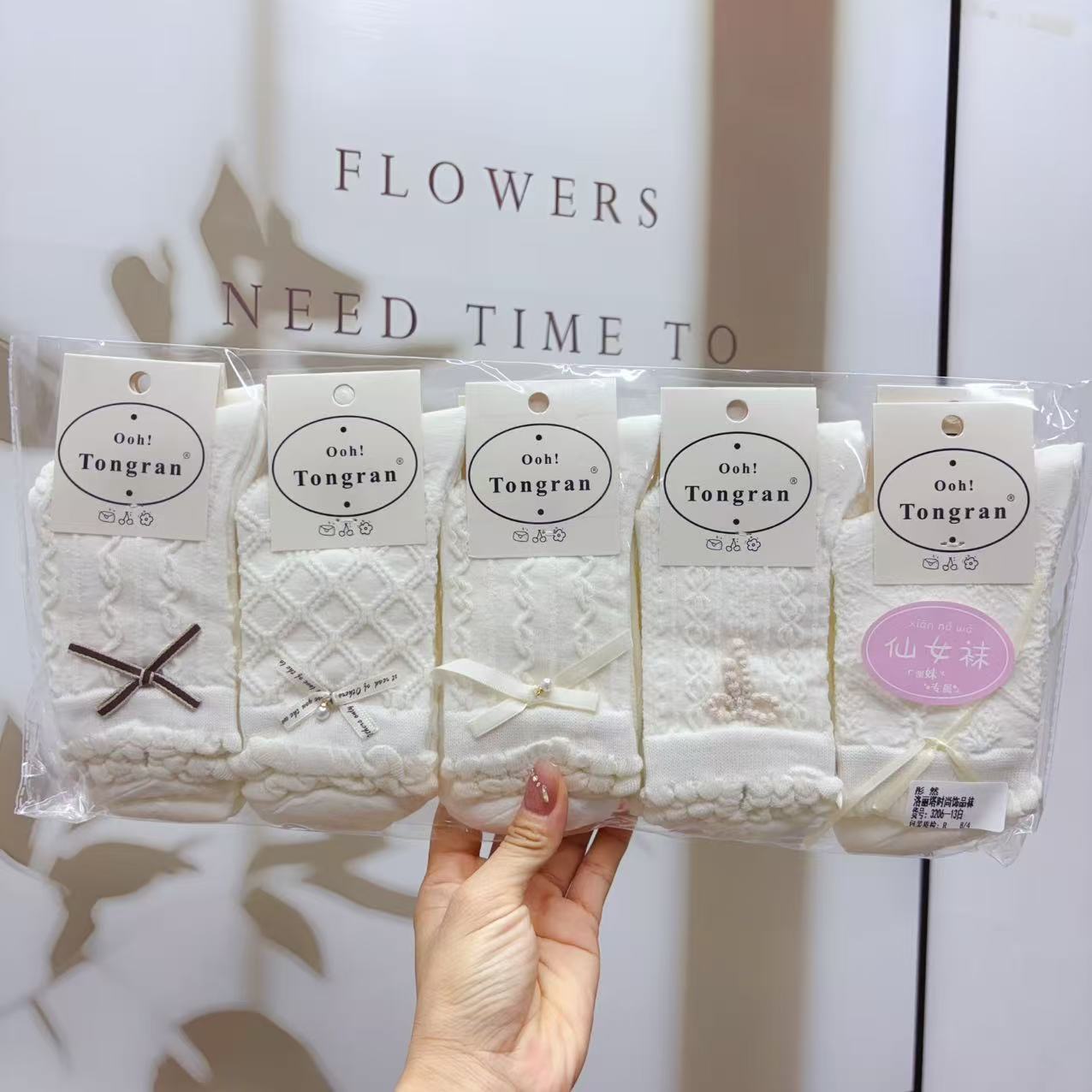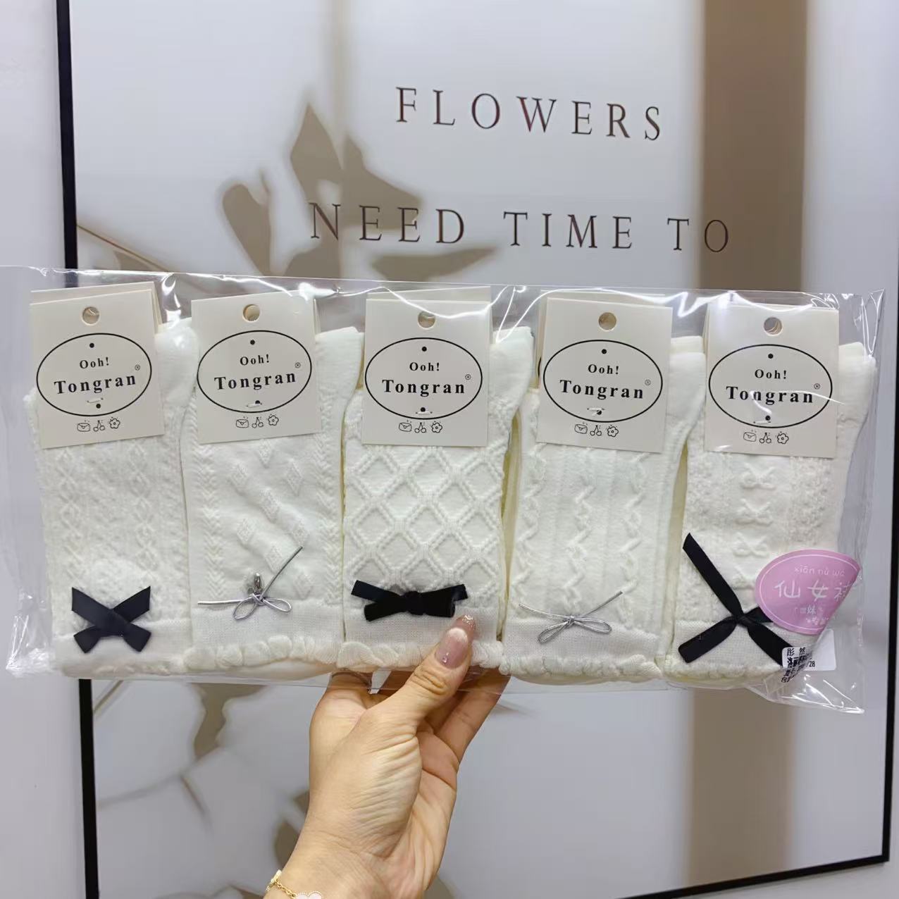 통란 로리타 요정 양말 중간 길이 양말 통기성 달콤한 여성 양말 리본 장식 양말 패셔너블하고 귀여운 면 양말