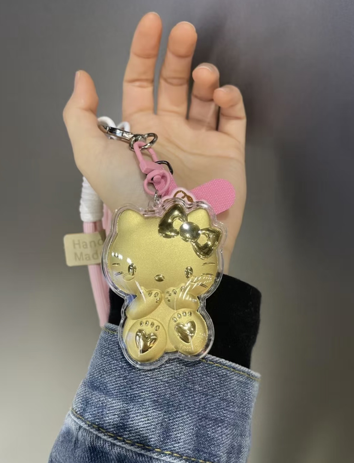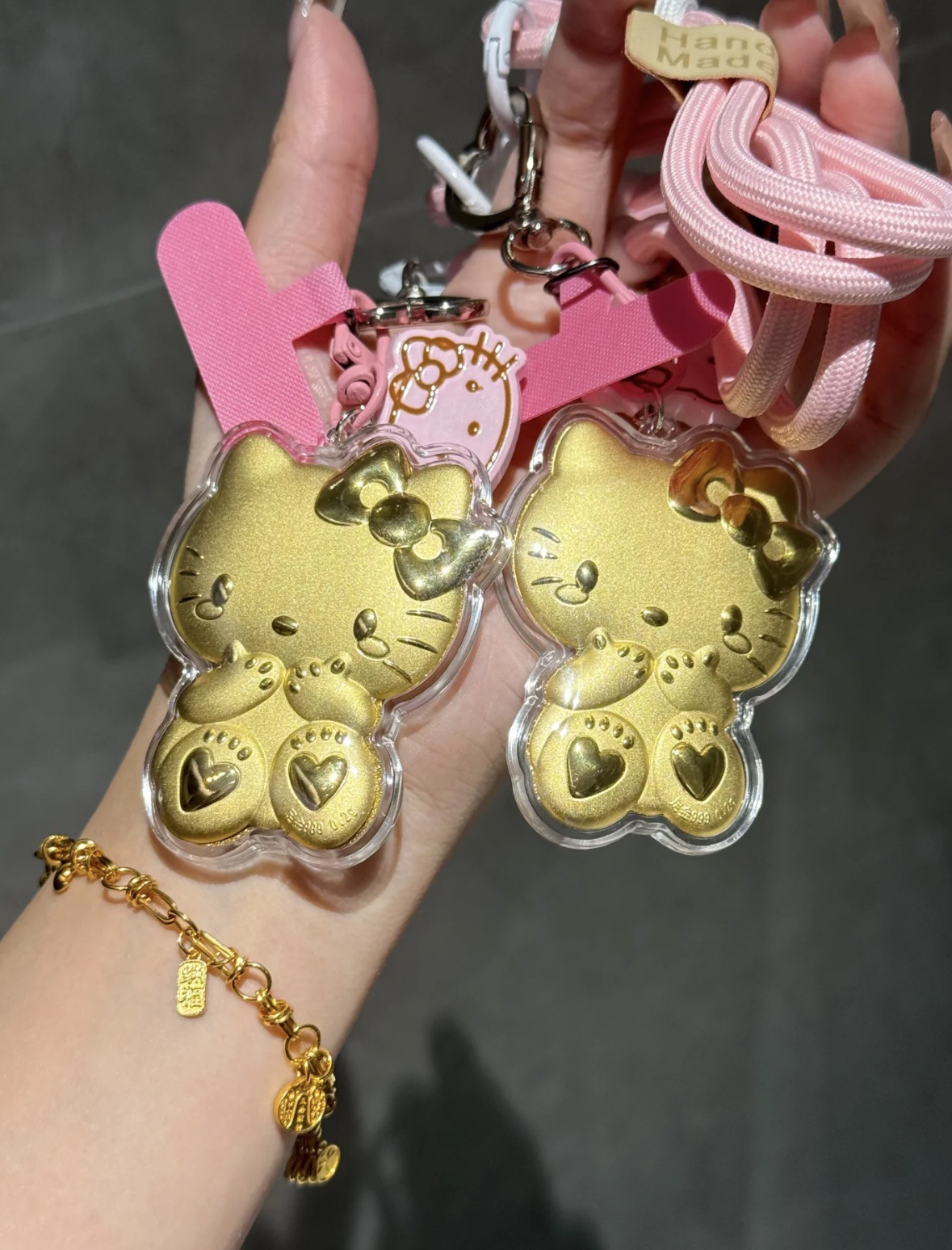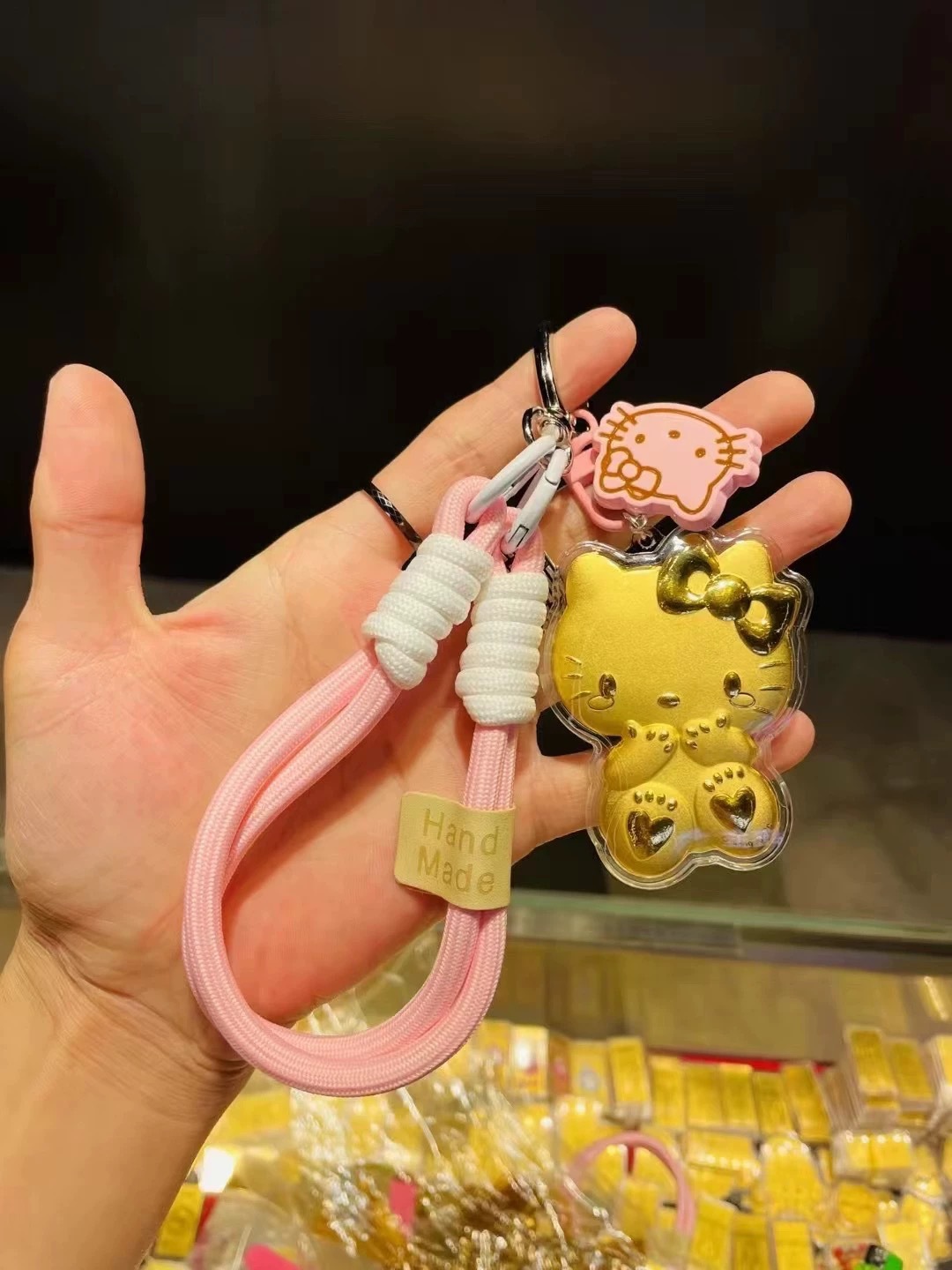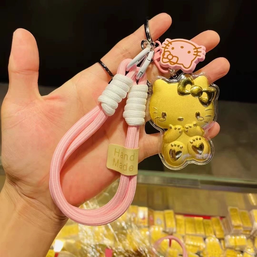 Shuibei 999helloKT 고양이 키 체인 귀여운 만화 골드 플레이크 작은 골드 바 휴대 전화 체인 가방 펜던트스토어 가기