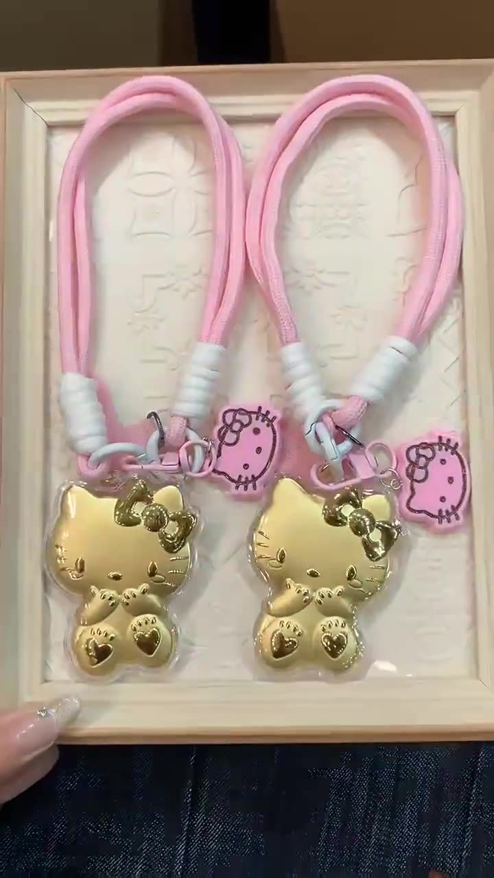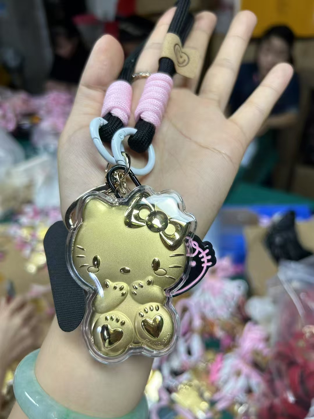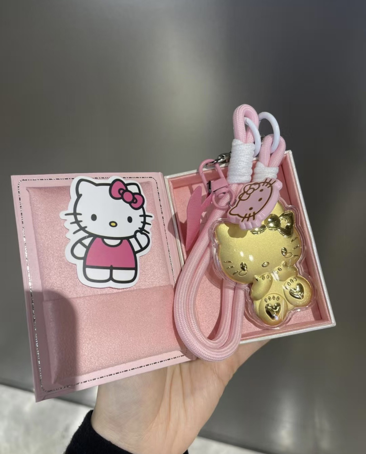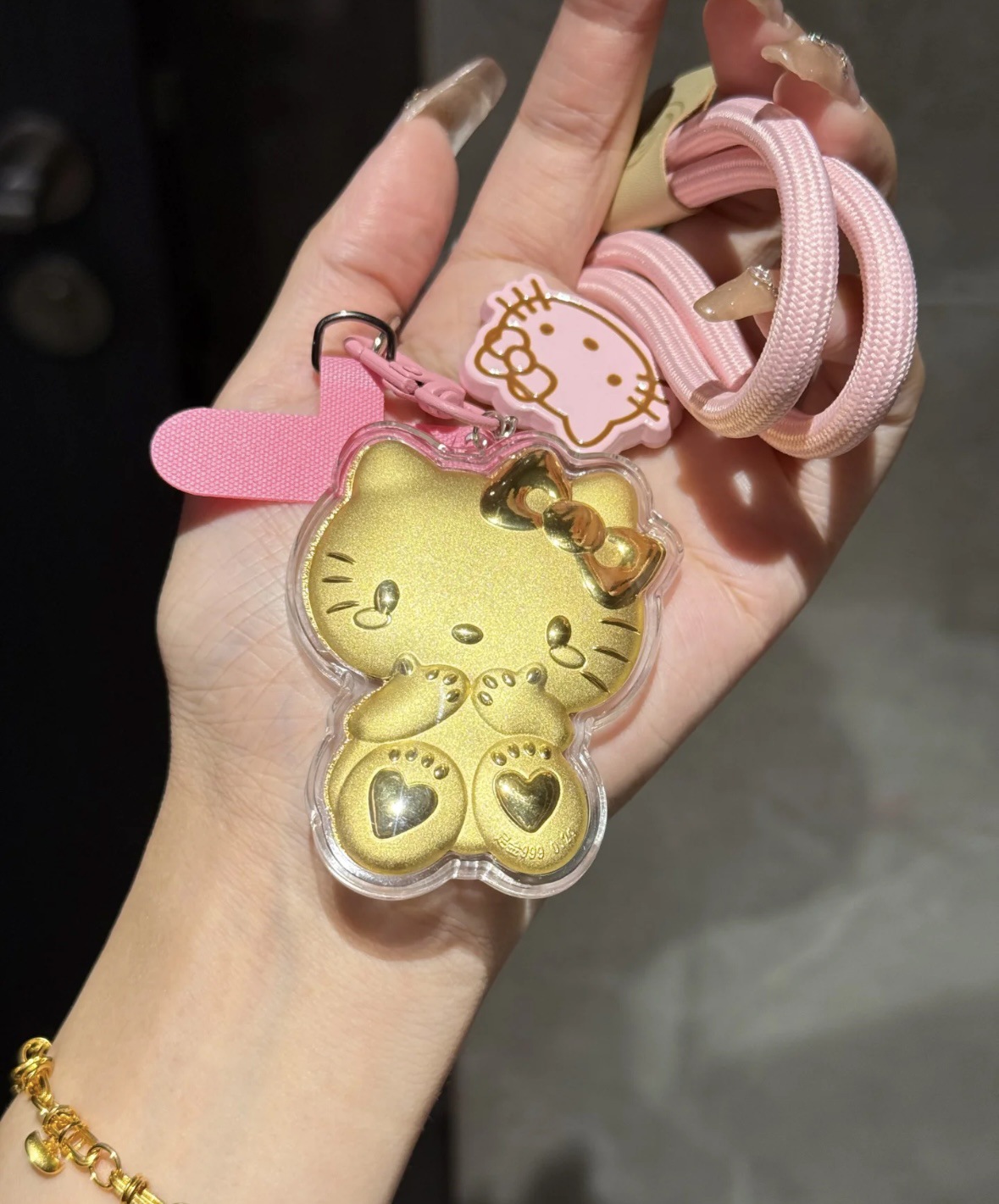 Shuibei 999helloKT 고양이 키 체인 귀여운 만화 골드 플레이크 작은 골드 바 휴대 전화 체인 가방 펜던트스토어 가기