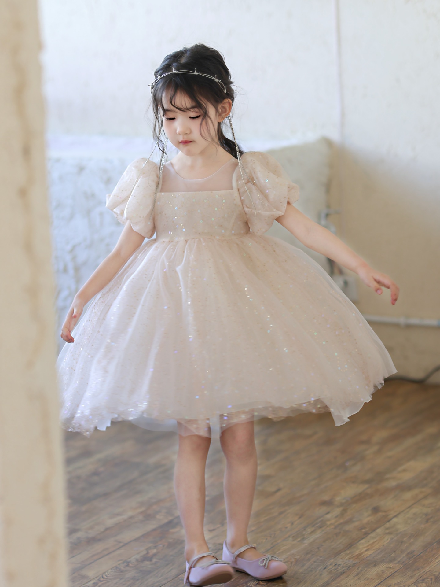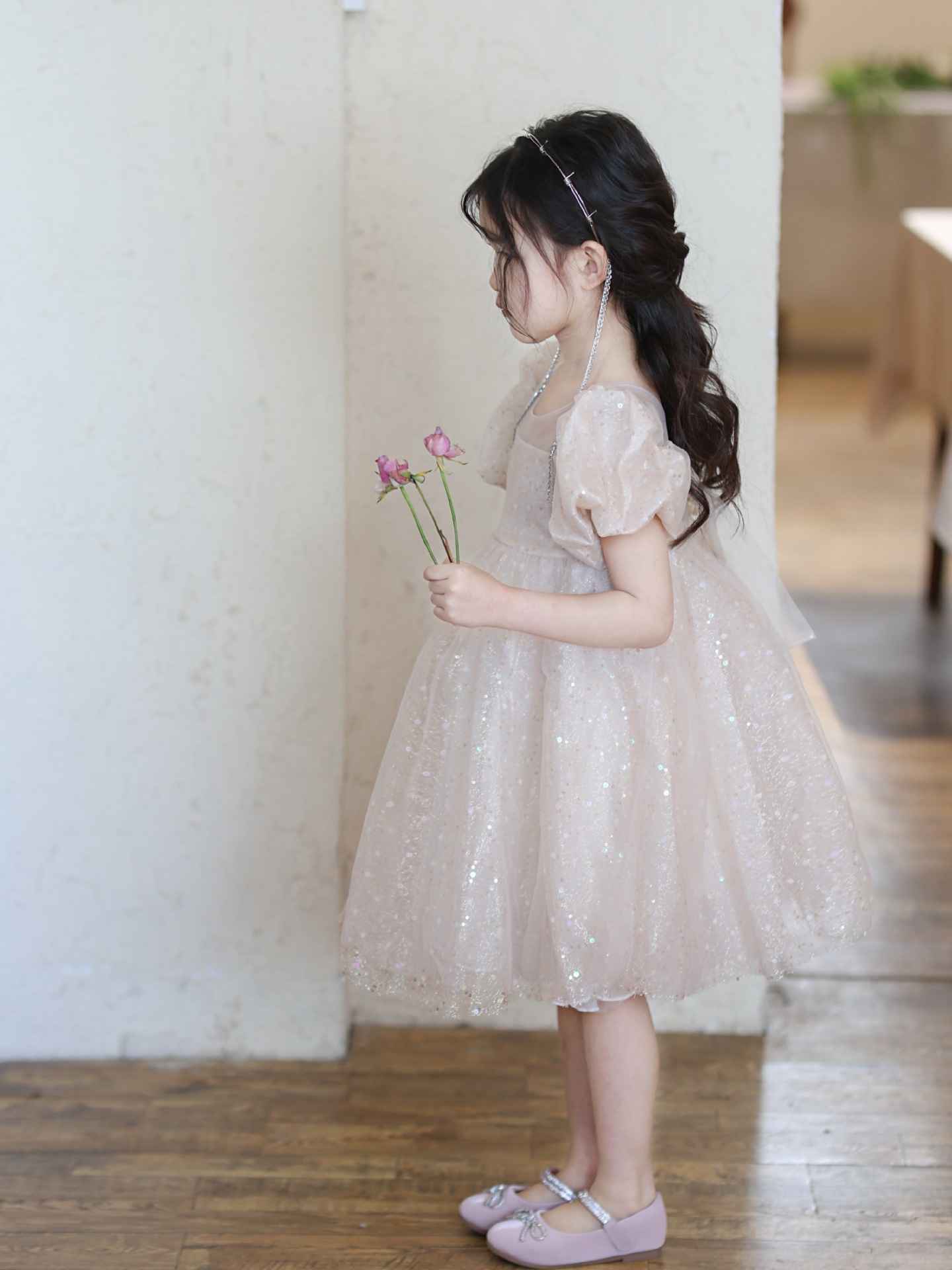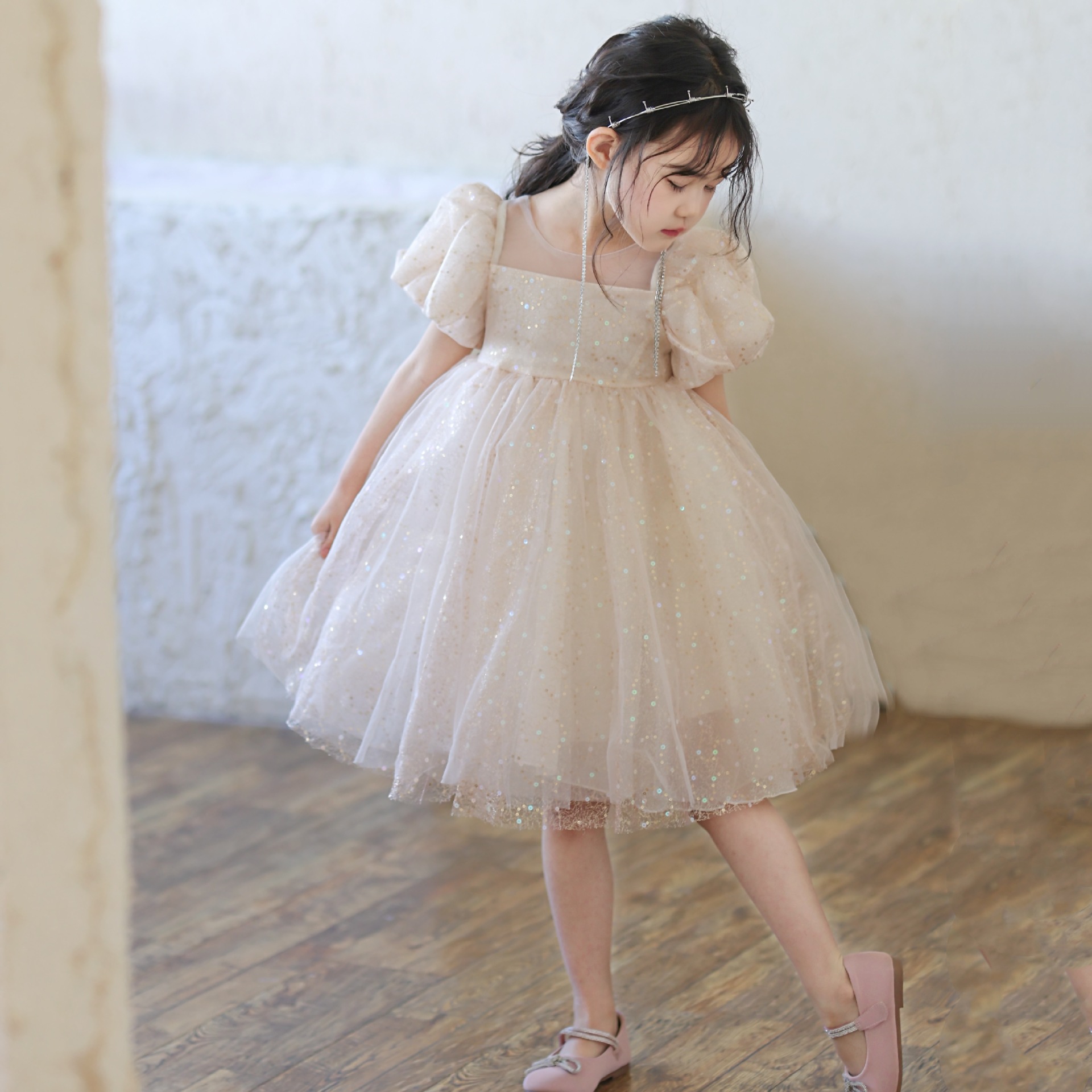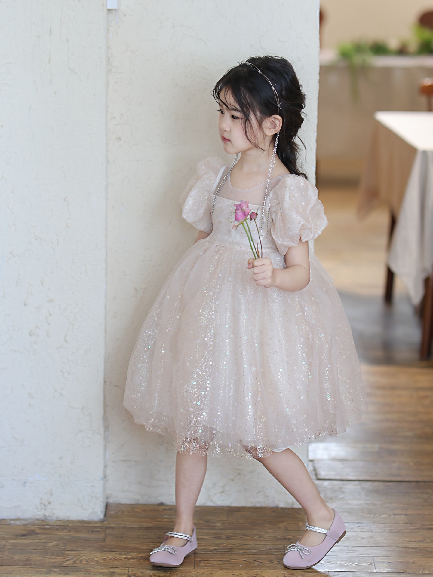 여자 짧은 소매 버블 소매 큰 스윙 원피스 2025 여름 새 소녀의 공주 원피스 베일 원피스스토어 가기