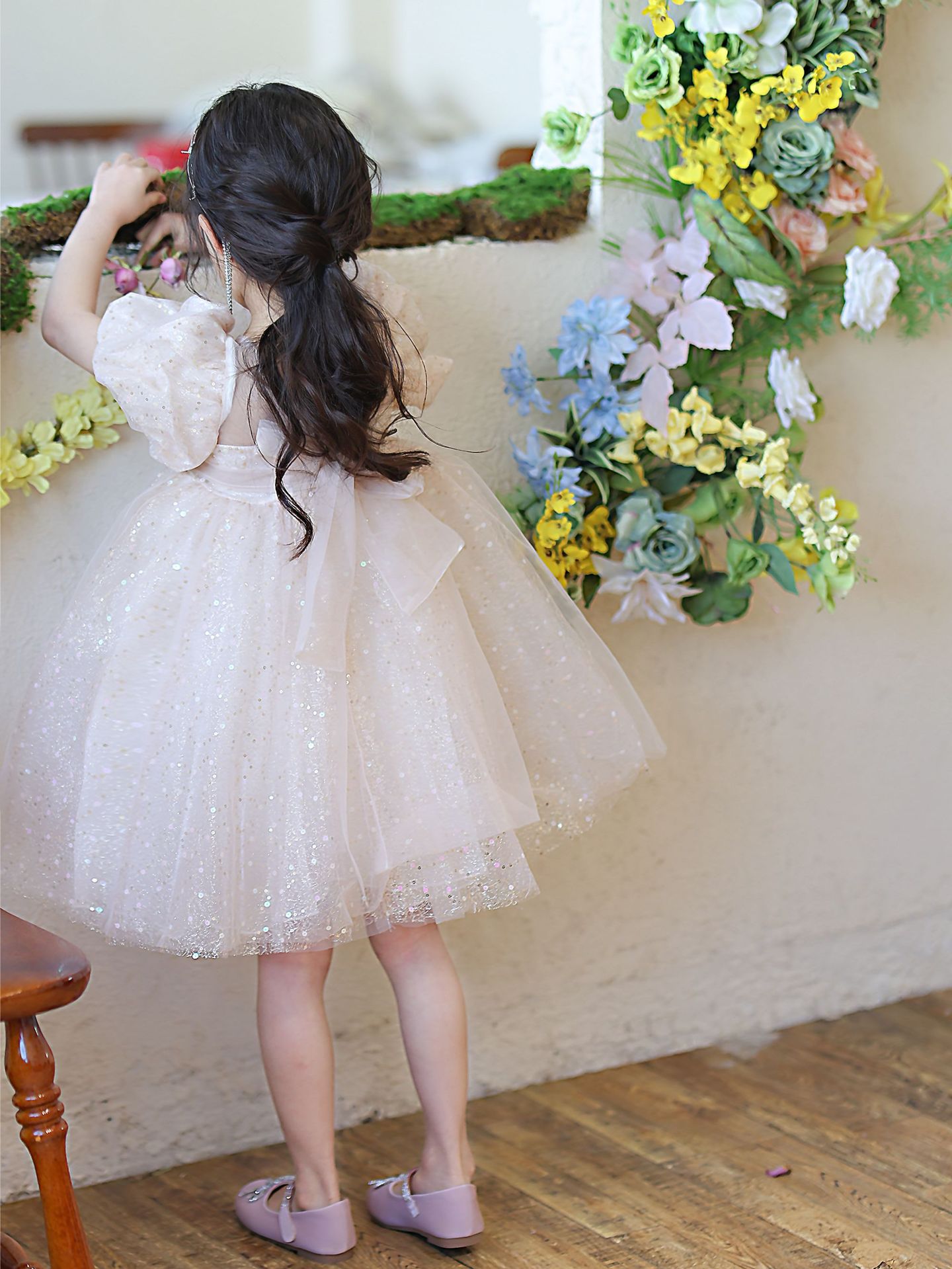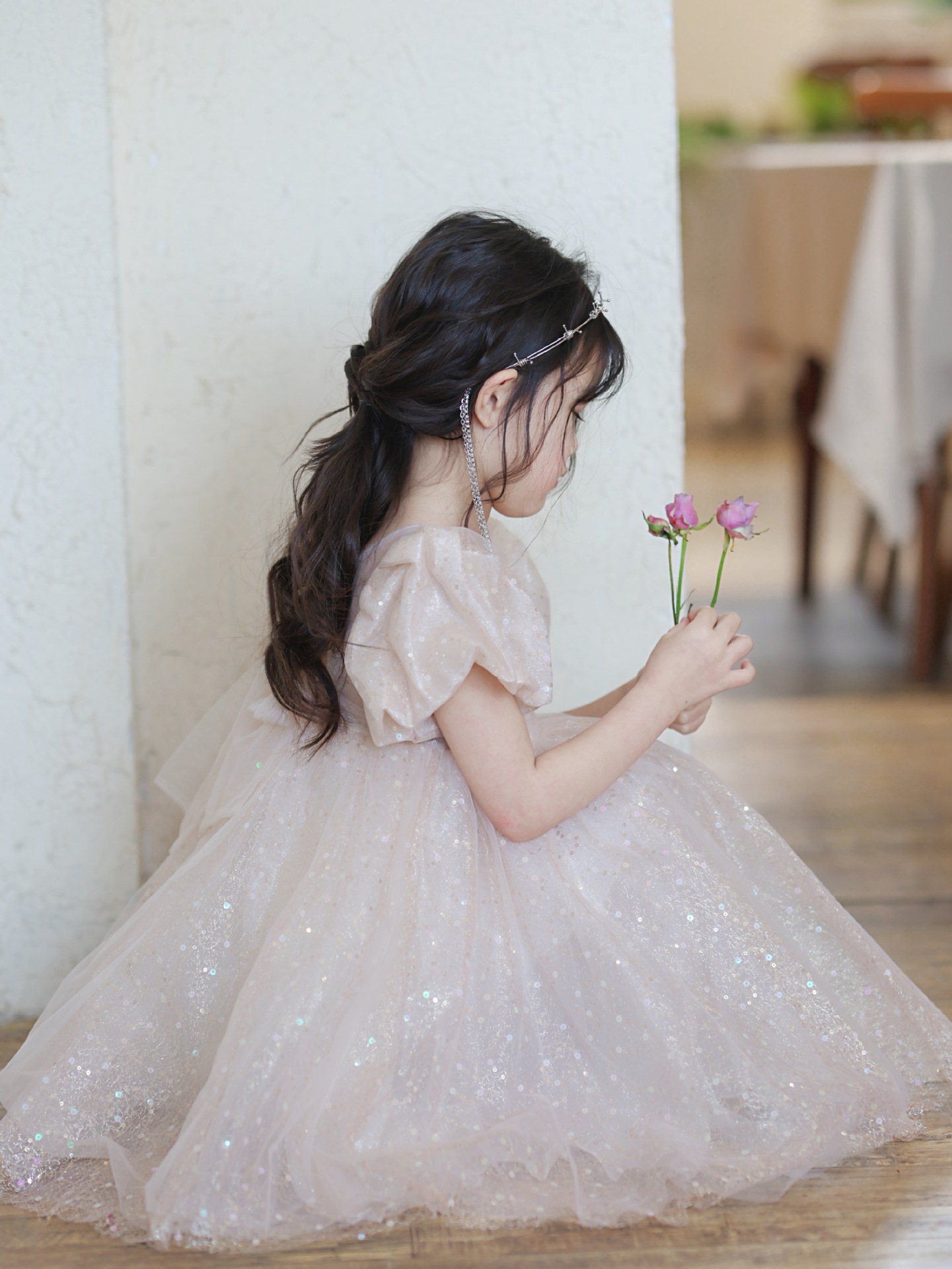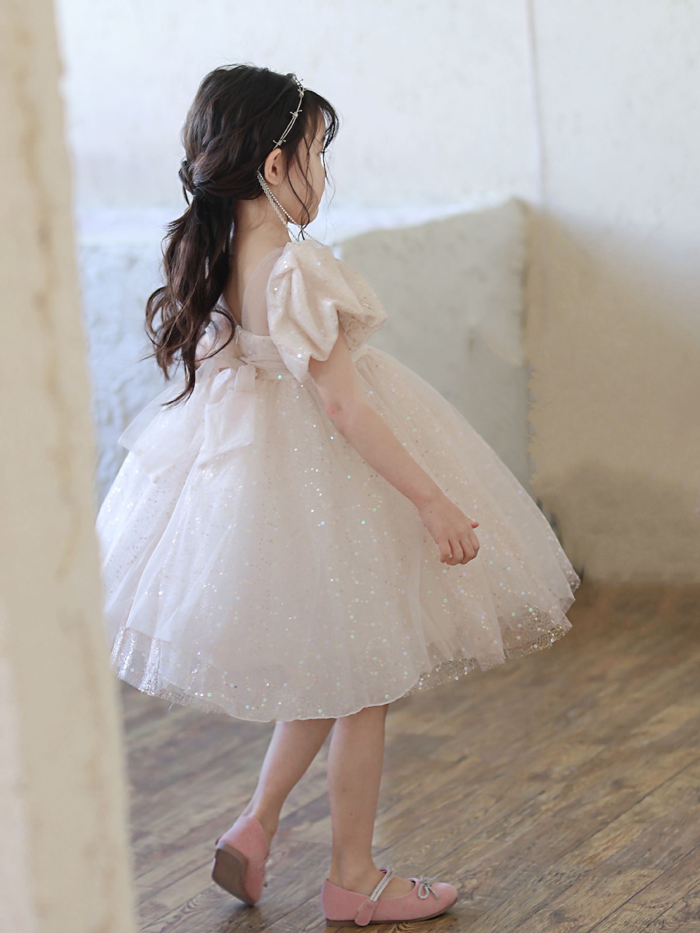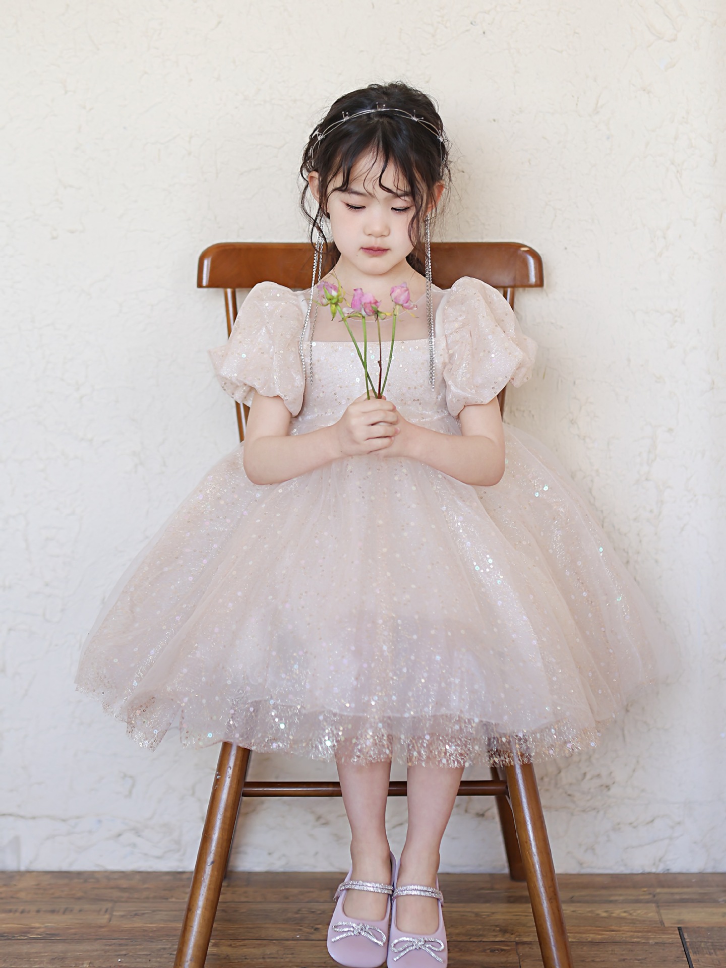 여자 짧은 소매 버블 소매 큰 스윙 원피스 2025 여름 새 소녀의 공주 원피스 베일 원피스스토어 가기
