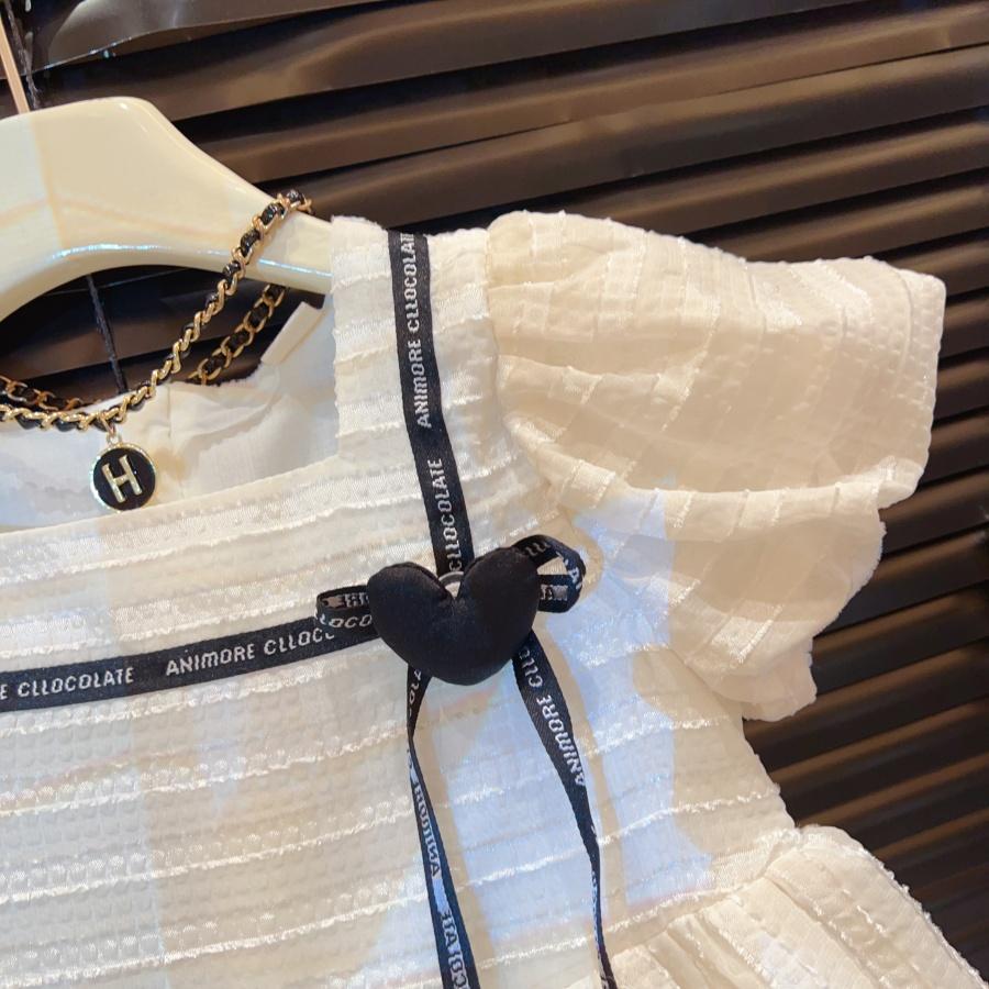 여자 작은 향기 드레스 여름 새로운 스타일 2025 어린이 메쉬 스플 라이스 퍼프 슬리브 공연 의상 공주 스커트