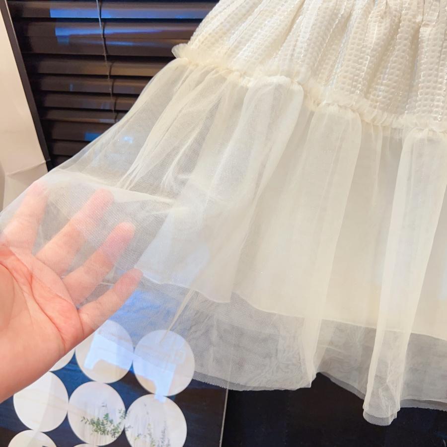 여자 작은 향기 드레스 여름 새로운 스타일 2025 어린이 메쉬 스플 라이스 퍼프 슬리브 공연 의상 공주 스커트스토어 가기