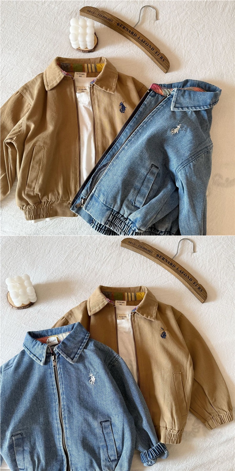 어린이 데님 코트 2025 봄과 가을 클래식 복고풍 고민 지퍼 아기 단색 재킷 내구성스토어 가기