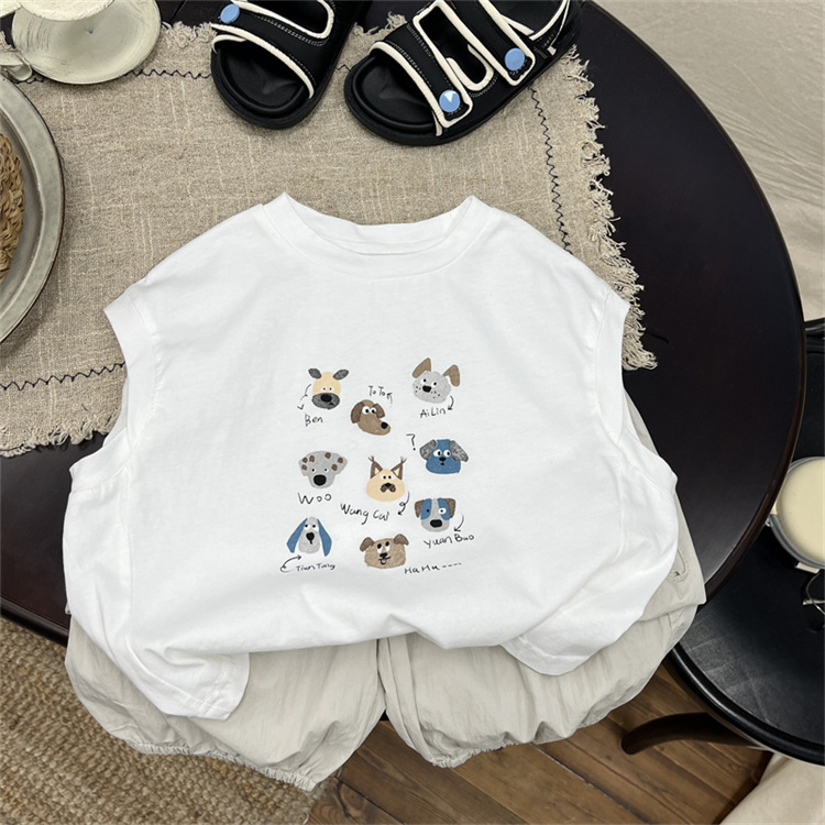 어린이 만화 조끼 2025 새로운 여름 소년 눈송이 면 얇은 민소매 최고 어린이 서양식 티셔츠