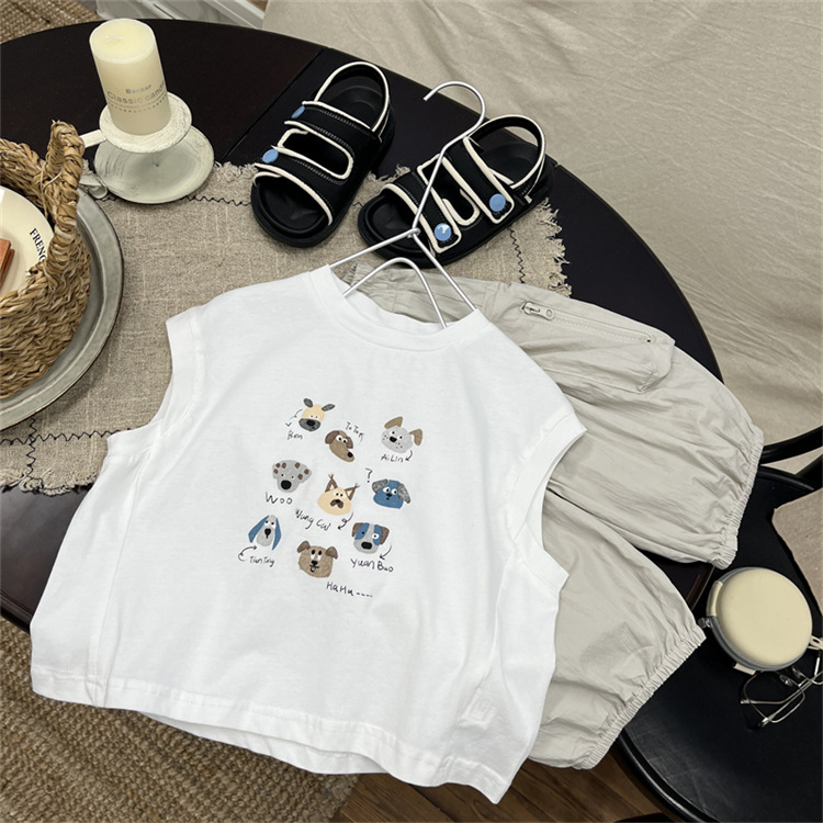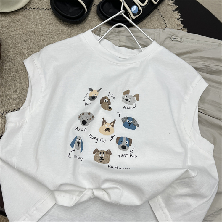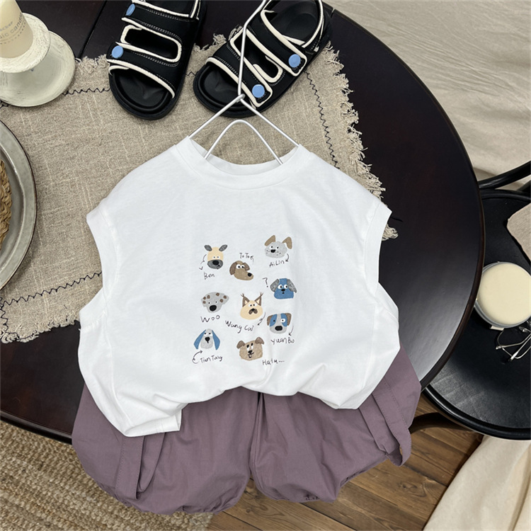 어린이 만화 조끼 2025 새로운 여름 소년 눈송이 면 얇은 민소매 최고 어린이 서양식 티셔츠스토어 가기