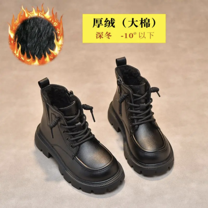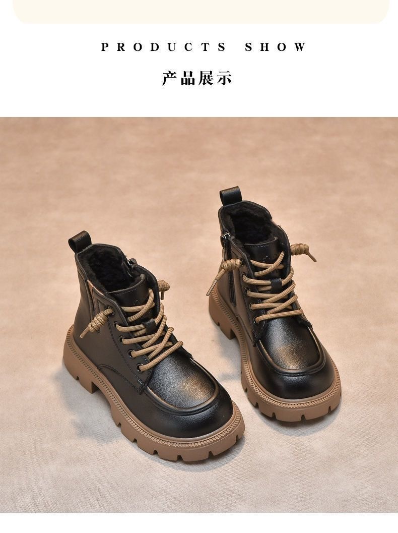 가을 겨울 어린이 마틴 부츠 2025 봄과 가을 새로운 짧은 부츠 플러스 벨벳 소녀 부츠 소년 가죽 부츠 싱글 부츠 겨울 신발스토어 가기