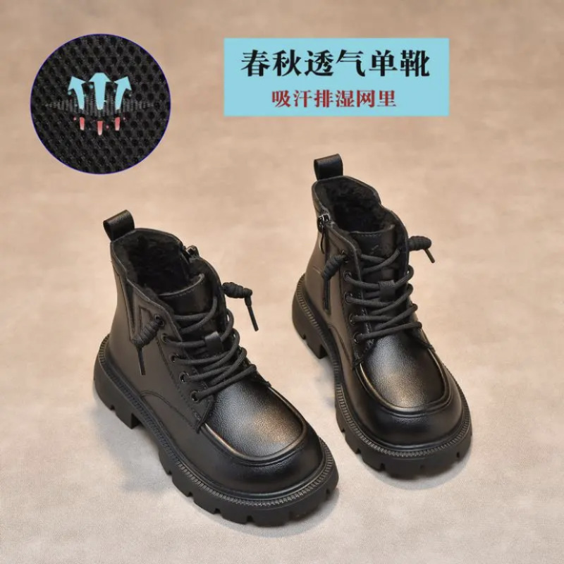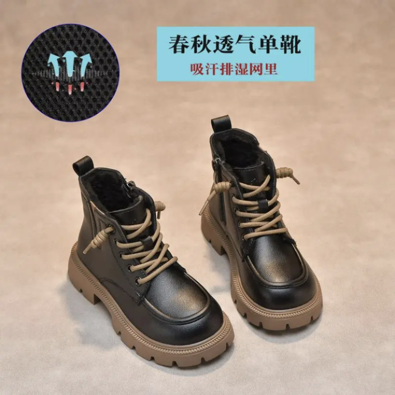 가을 겨울 어린이 마틴 부츠 2025 봄과 가을 새로운 짧은 부츠 플러스 벨벳 소녀 부츠 소년 가죽 부츠 싱글 부츠 겨울 신발