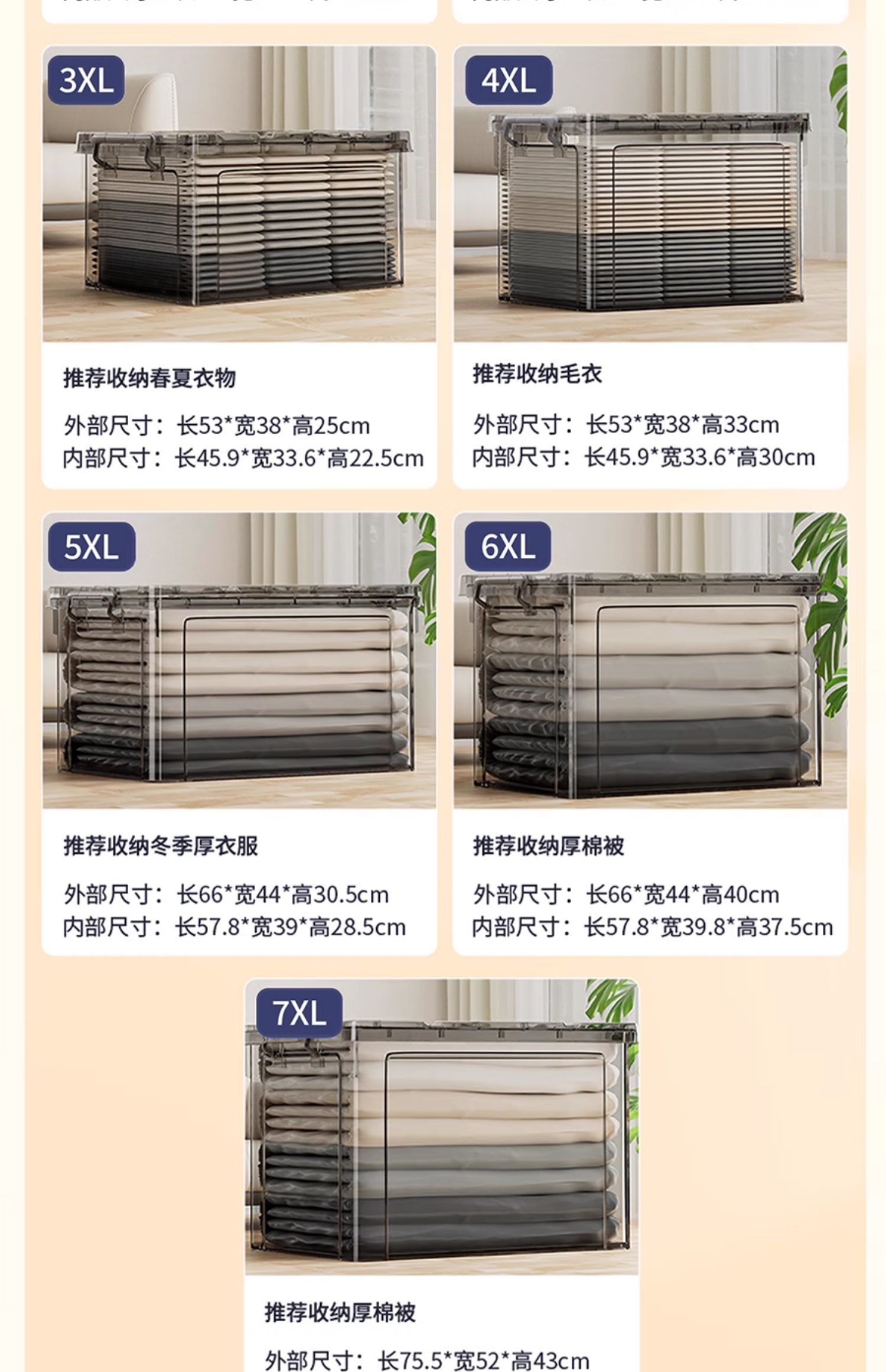 도우미 투명 보관 상자 가정용 대용량 플라스틱 상자 장난감 옷장 트렁크 보관 의류 Changling스토어 가기