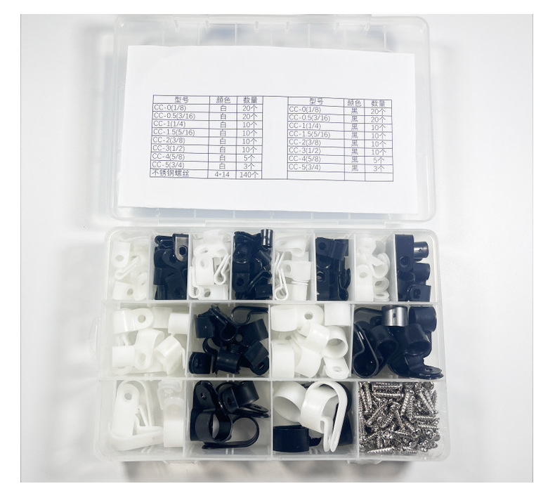 R형 와이어 클립(나사 포함), 플라스틱 전선 클립, 나일론 두꺼운 클립, 노동자와 자재 포함, 해외 공급원스토어 가기