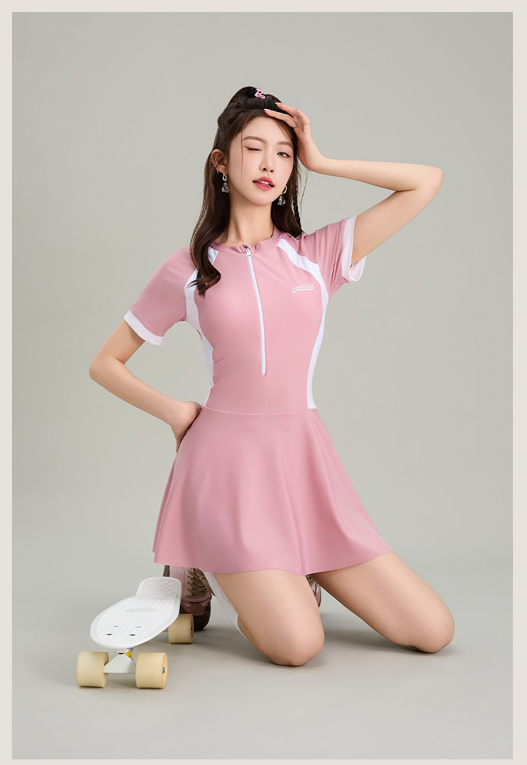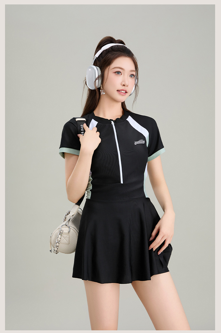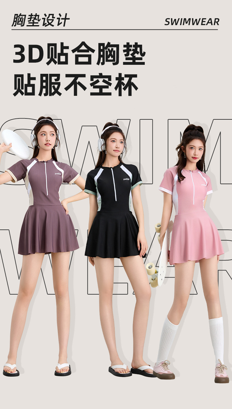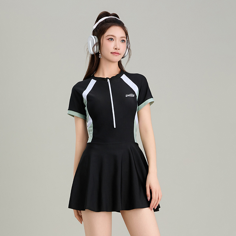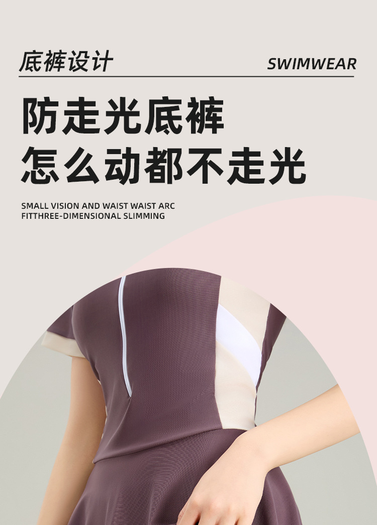 여름 새로운 수영복 여성의 플러스 사이즈 원피스 스커트 약간 뚱뚱한 여성의 보수적 인 슬림 통통녀 온천 수영복 도매