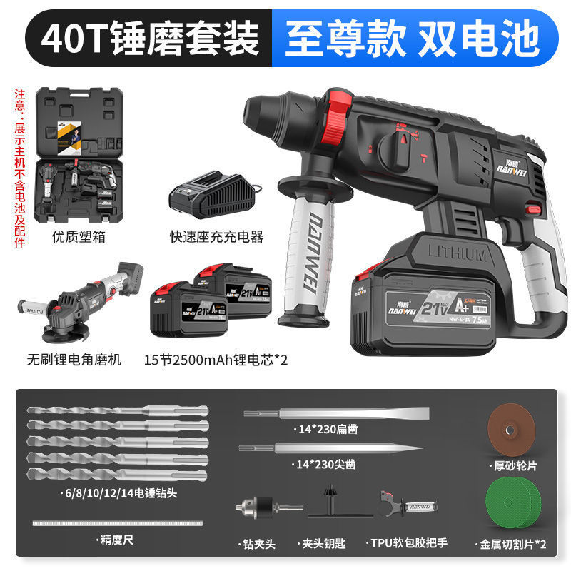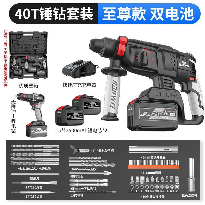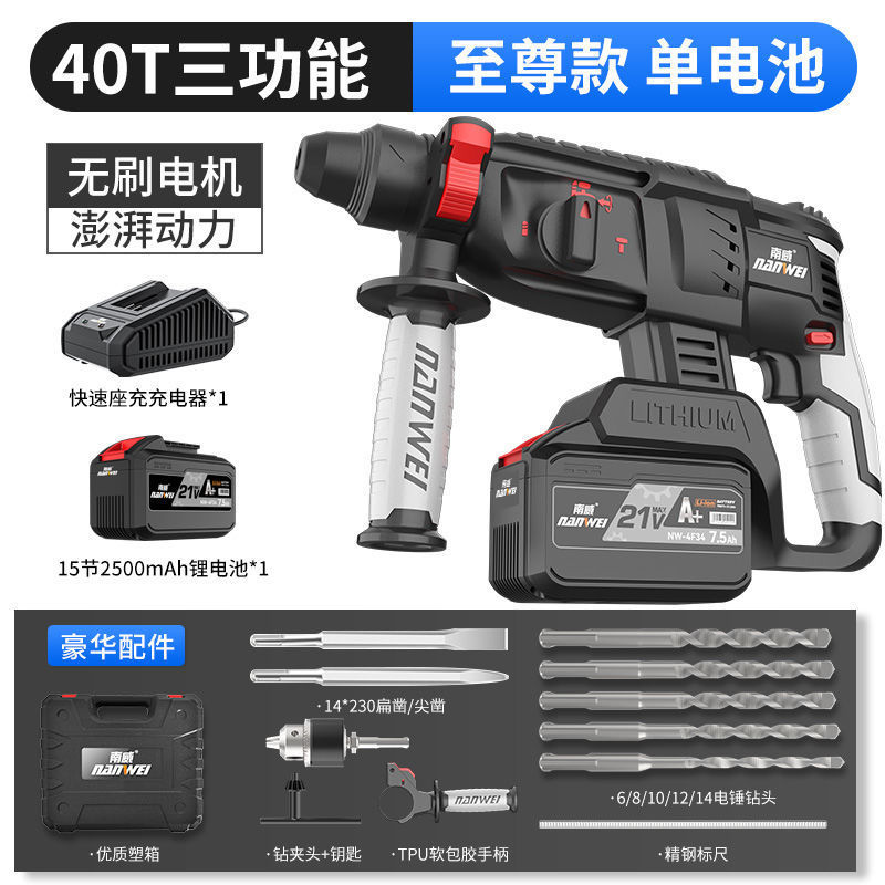 • 브러시리스 킹 삼용 전기 해머 15섹션 40T 듀얼 전기