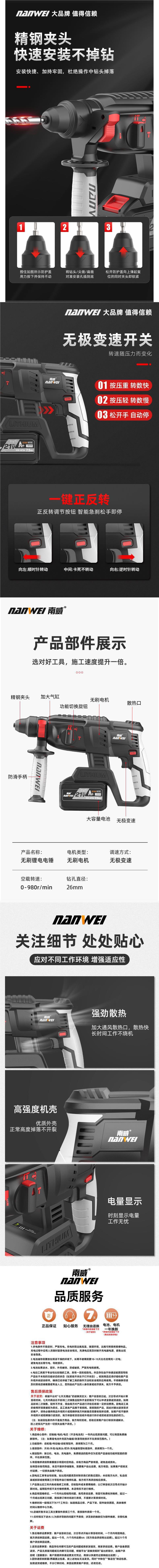 Nanwei 브러시리스 충전식 전기 해머 전기 선택 무거운 다기능 리튬 배터리 무선 충격 드릴 산업 등급 전기 드릴스토어 가기