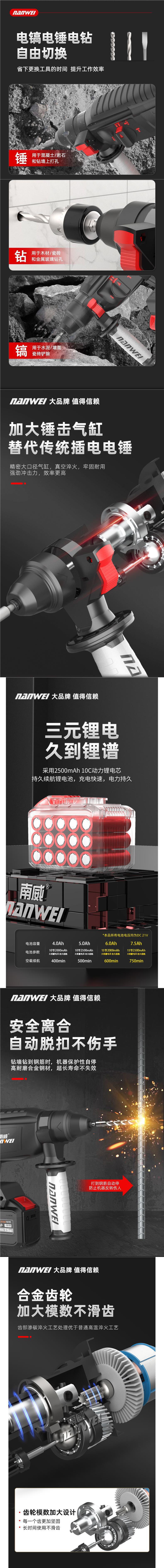 Nanwei 브러시리스 충전식 전기 해머 전기 선택 무거운 다기능 리튬 배터리 무선 충격 드릴 산업 등급 전기 드릴
