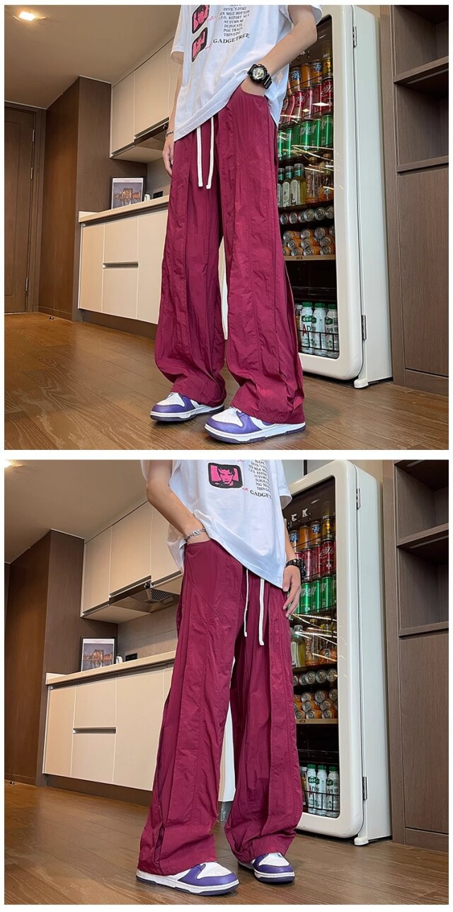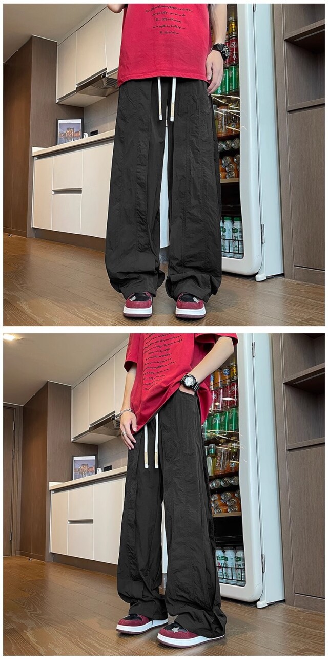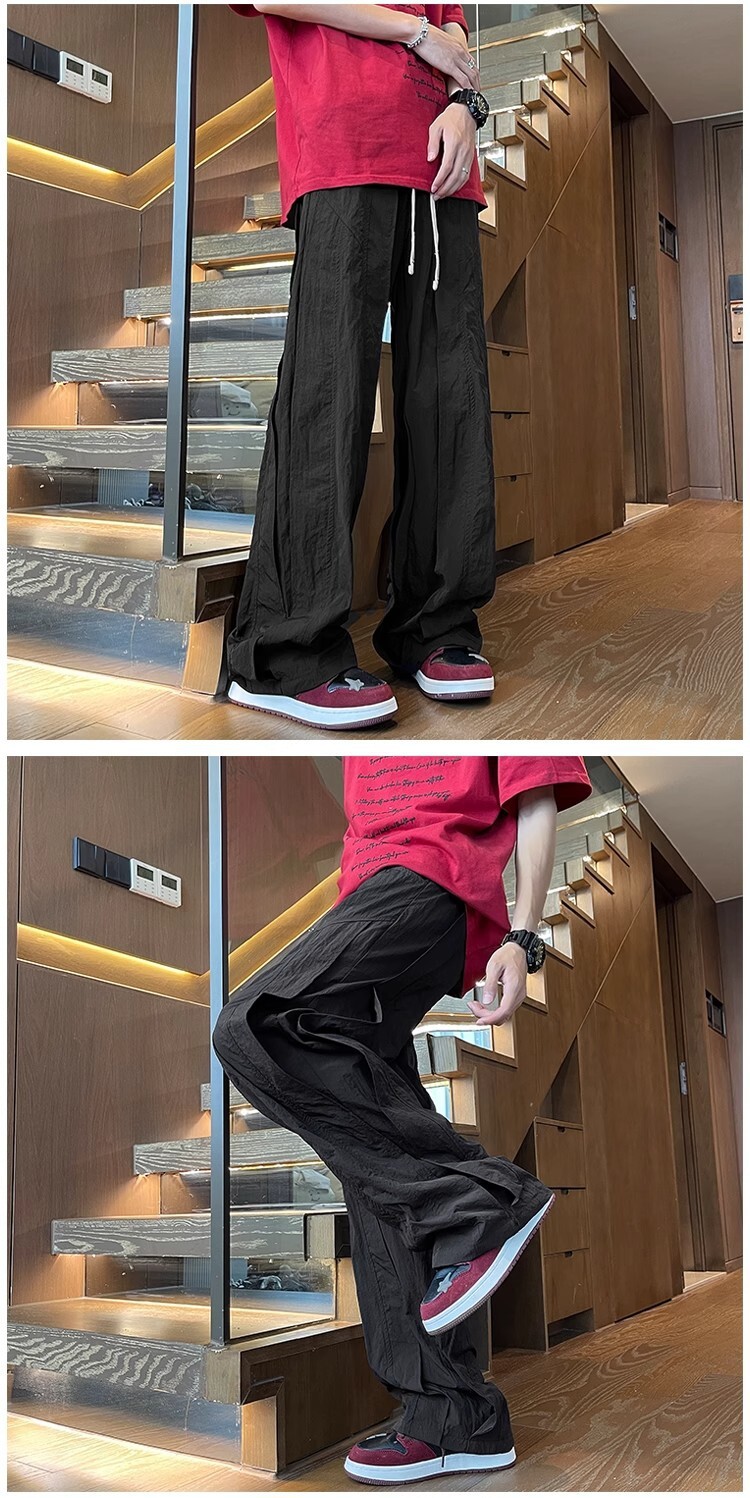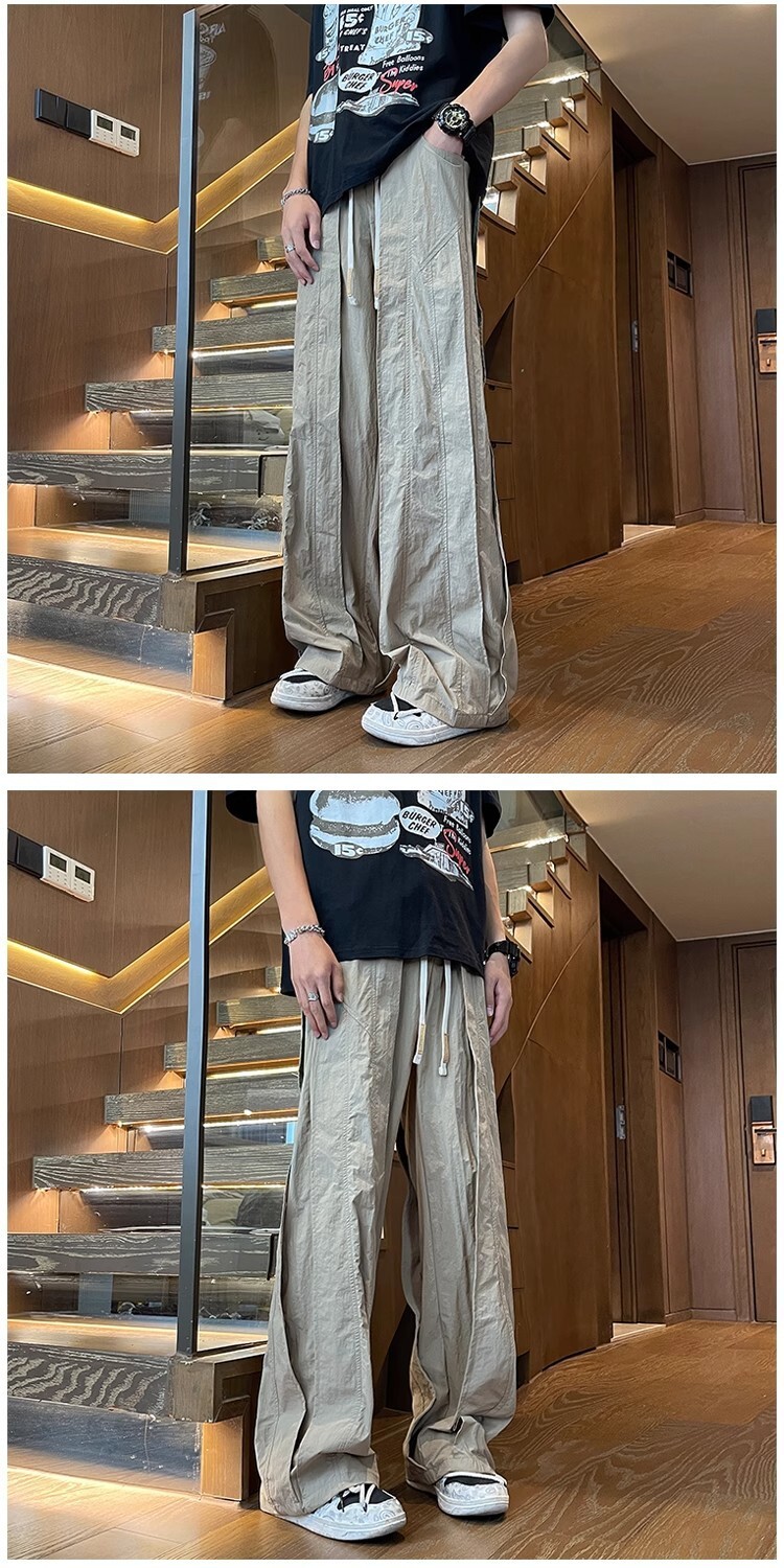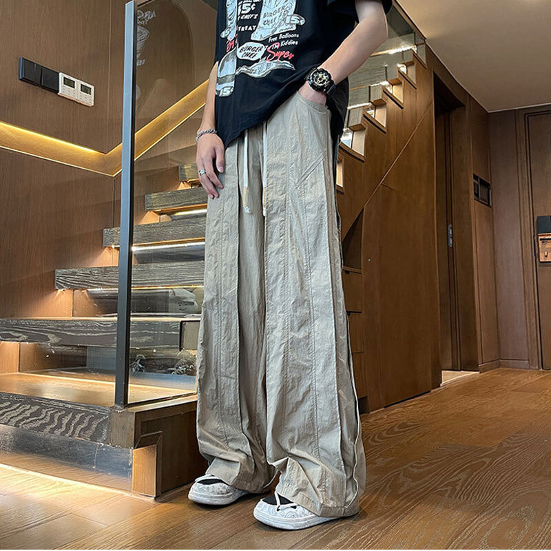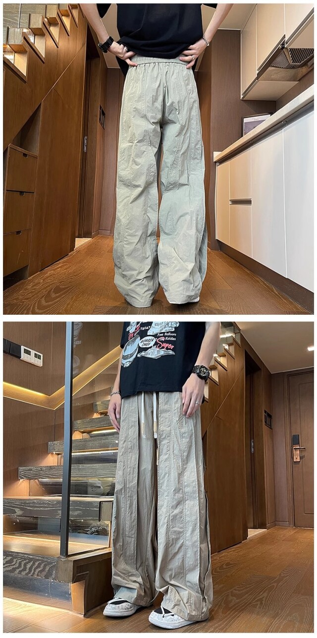 남성과 여성을 위한 레트로 바이브 속건성 낙하산 바지, 얇고 루즈한 스트레이트 와이드 레그 방수 캐주얼 충전 바지