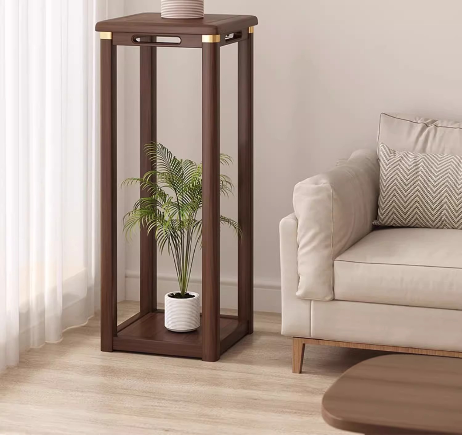 • 고급 구리색 코너 [호두색상-단층 x호 꽃대 높이 60CM] 꽃꽂이