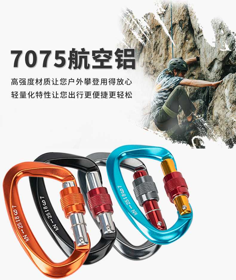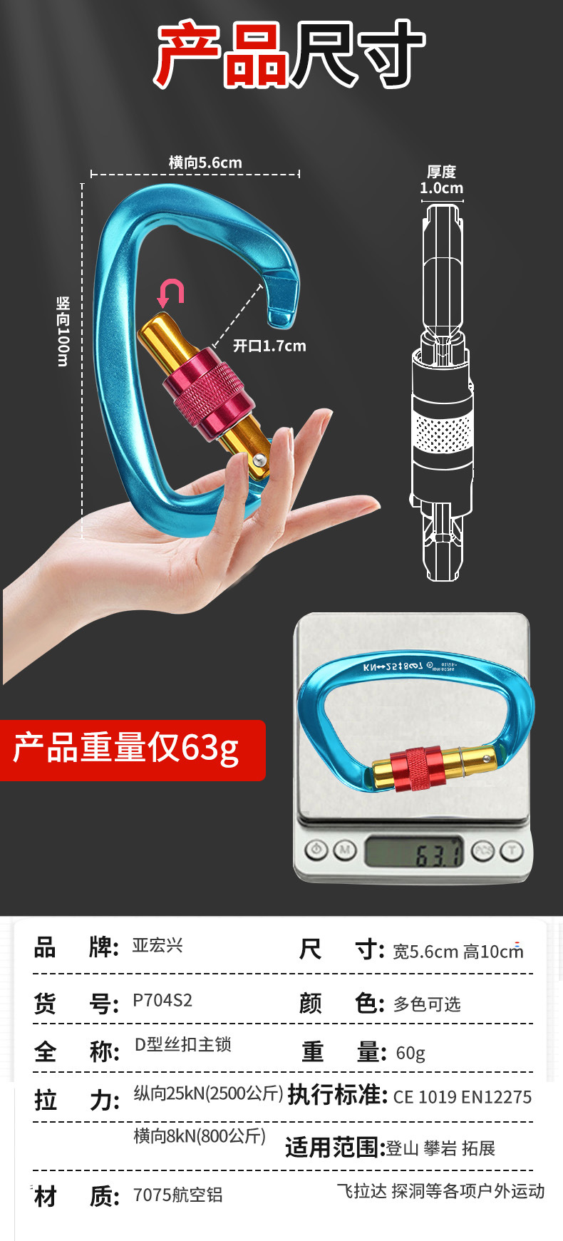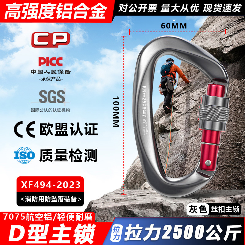 CP 7075 항공 알루미늄 D 형 등산 버클 암벽 등반 메인 잠금 후크 25KN 등산 버클 UIAA CE 나사 실
