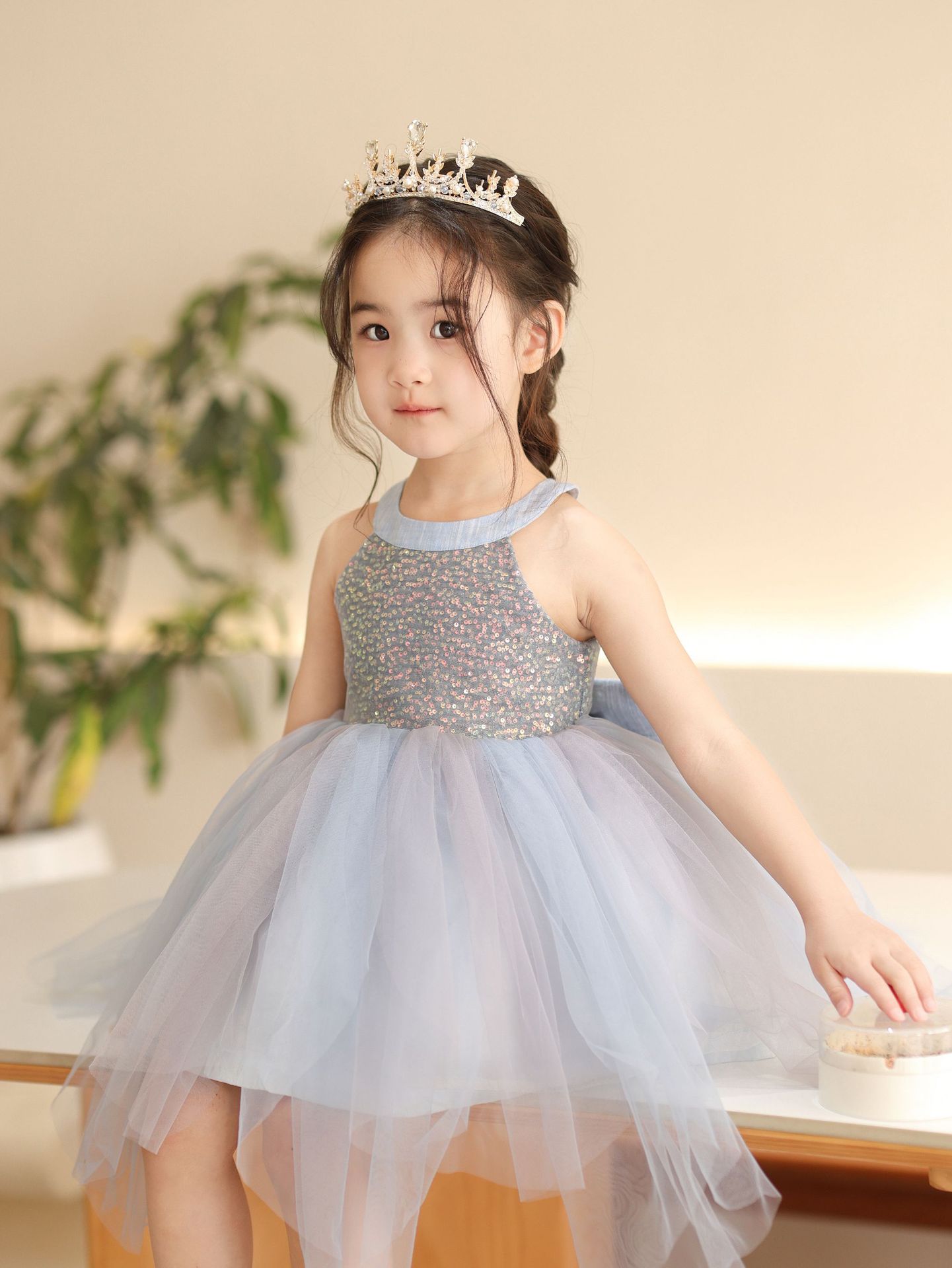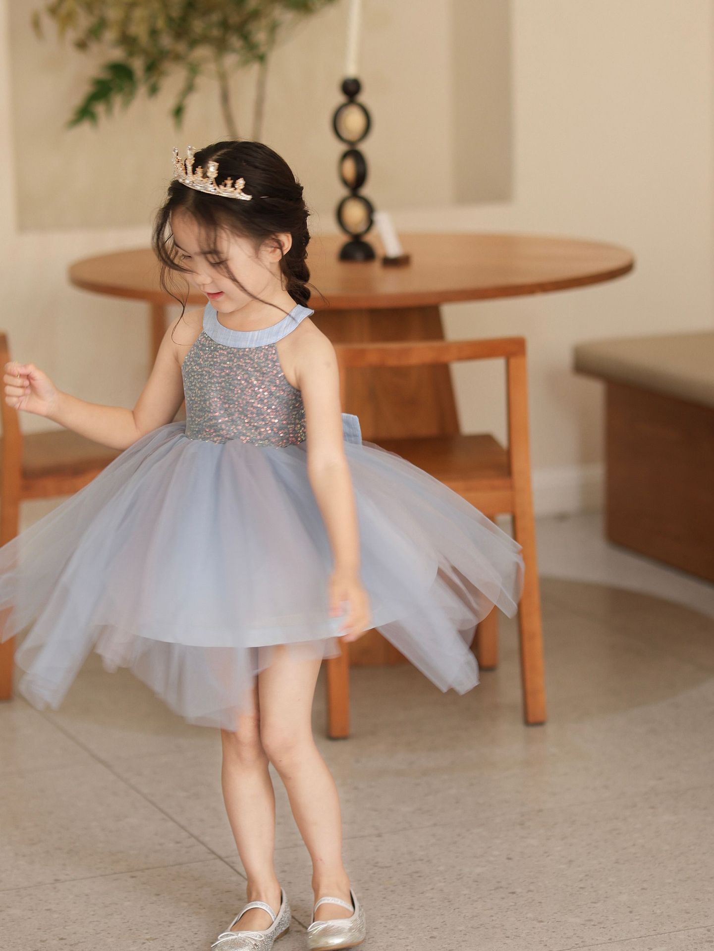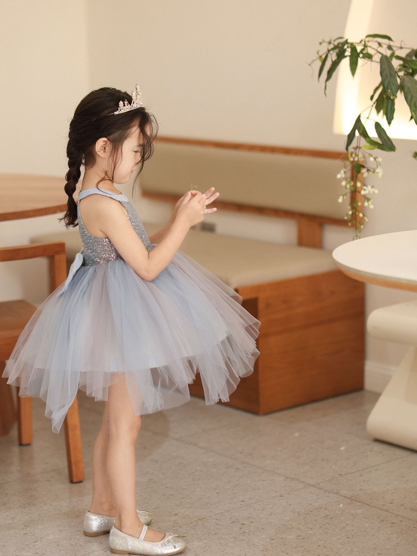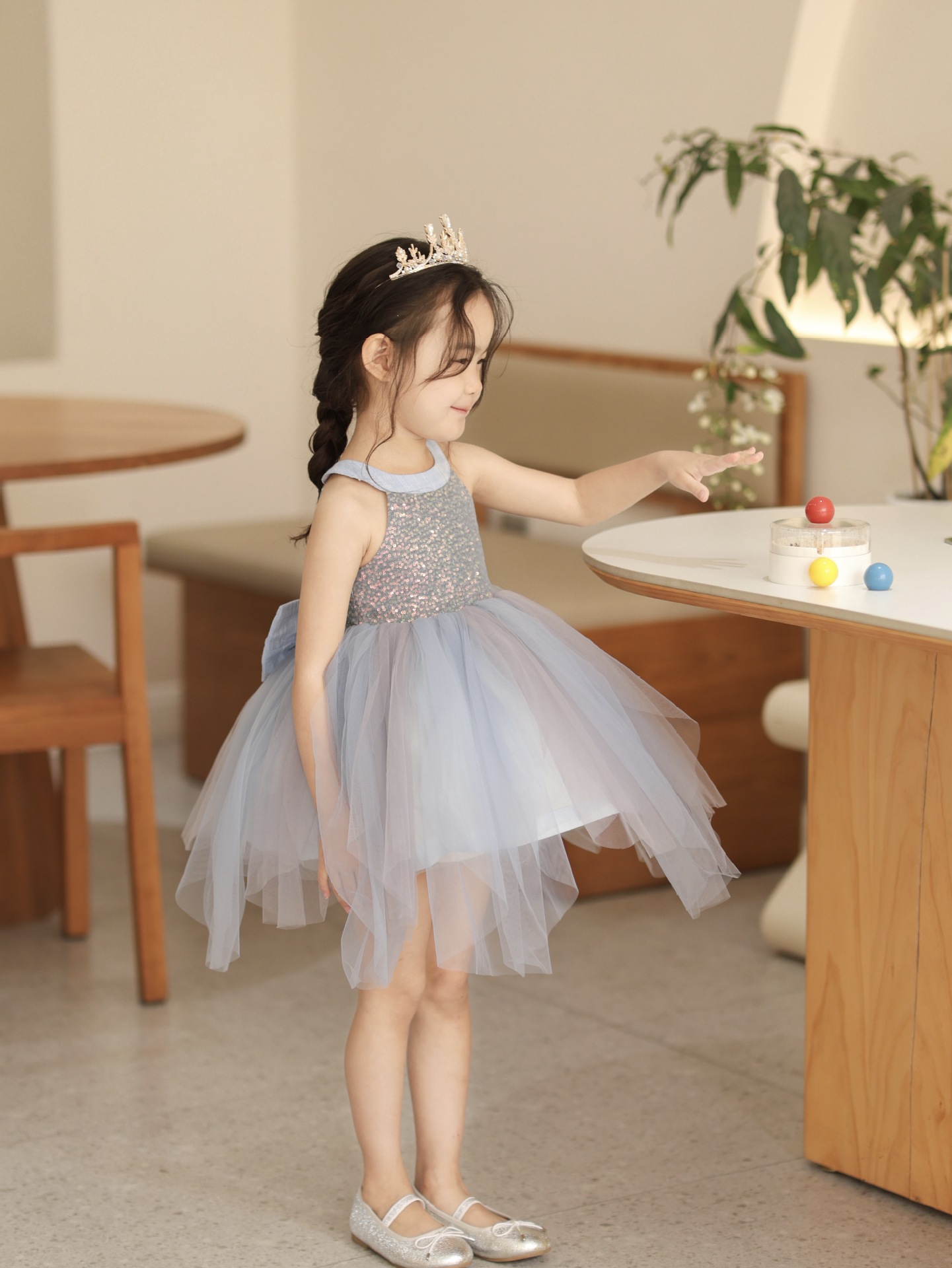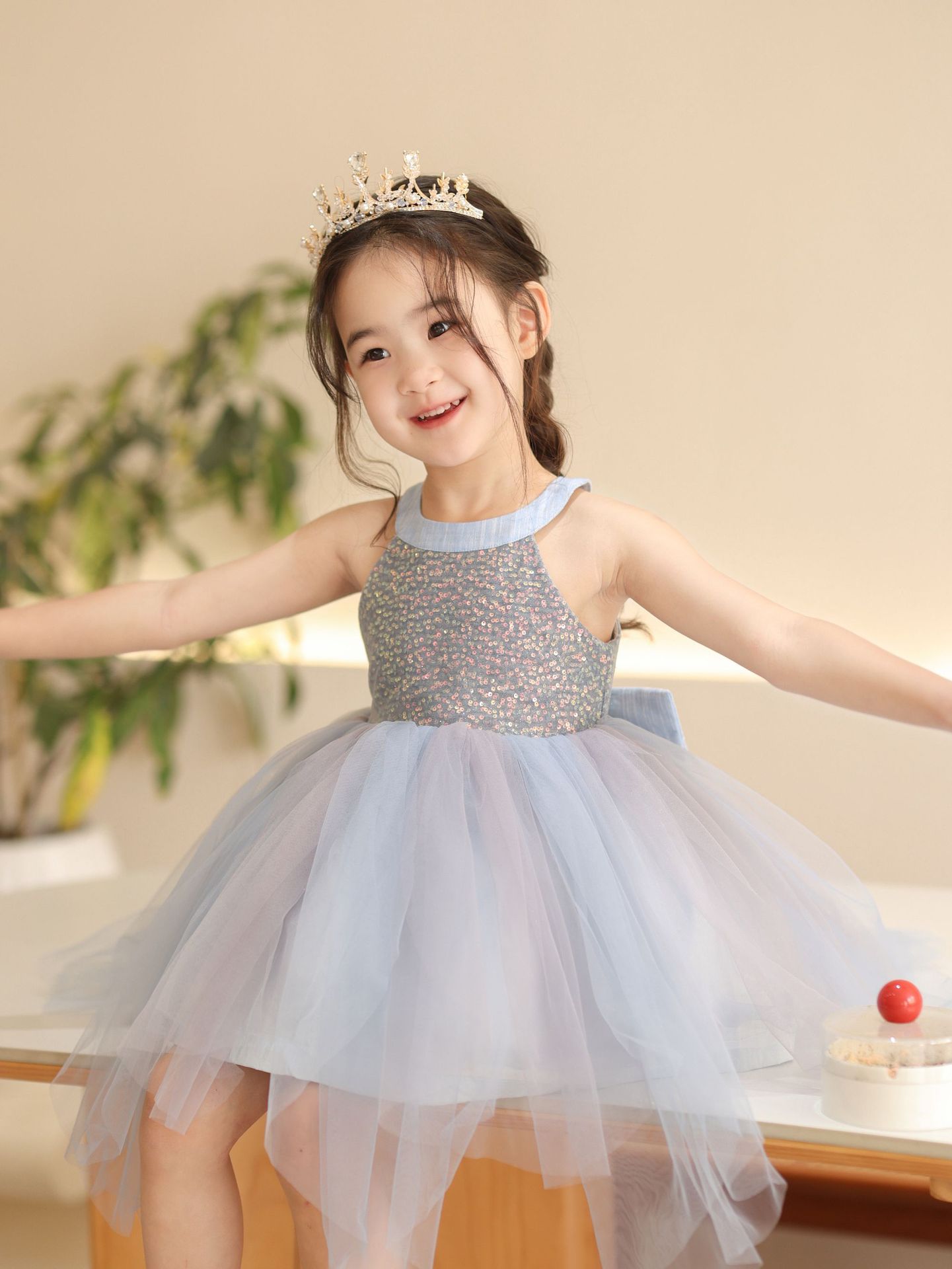 여자 아이샤 목 공주 원피스 2025 여름 새 소녀 블루 스팽글 메쉬 원피스 원피스 생일 원피스스토어 가기