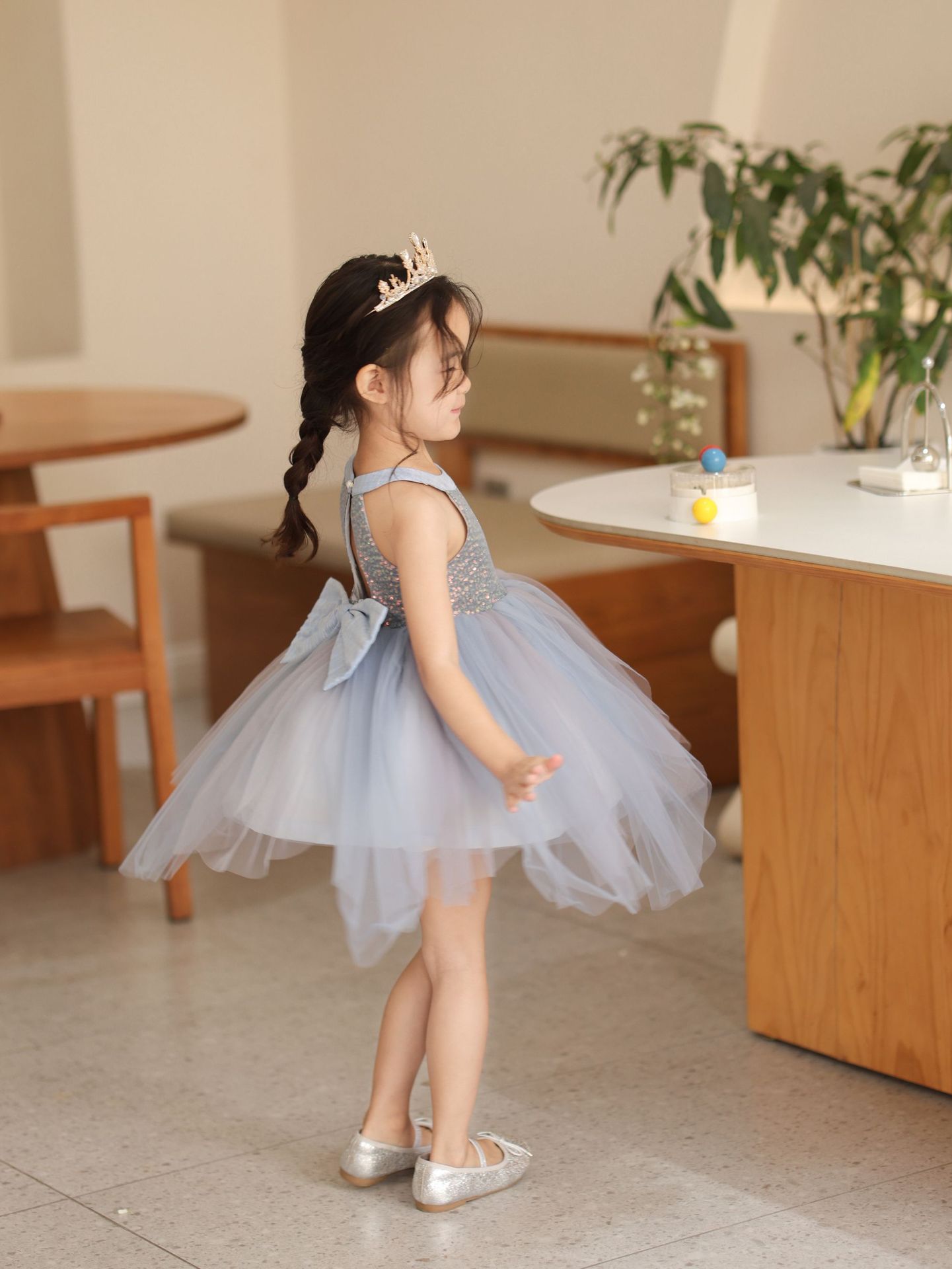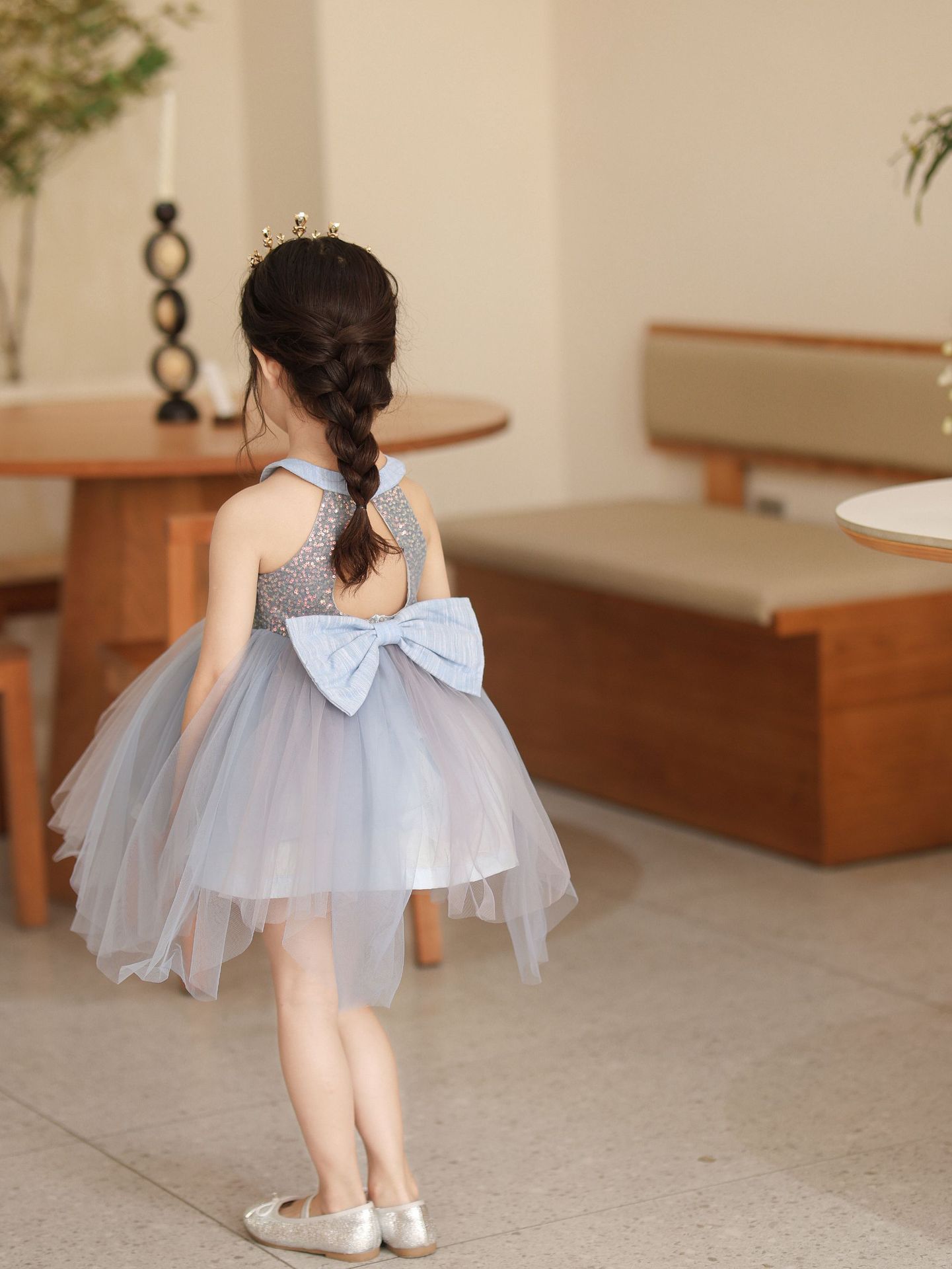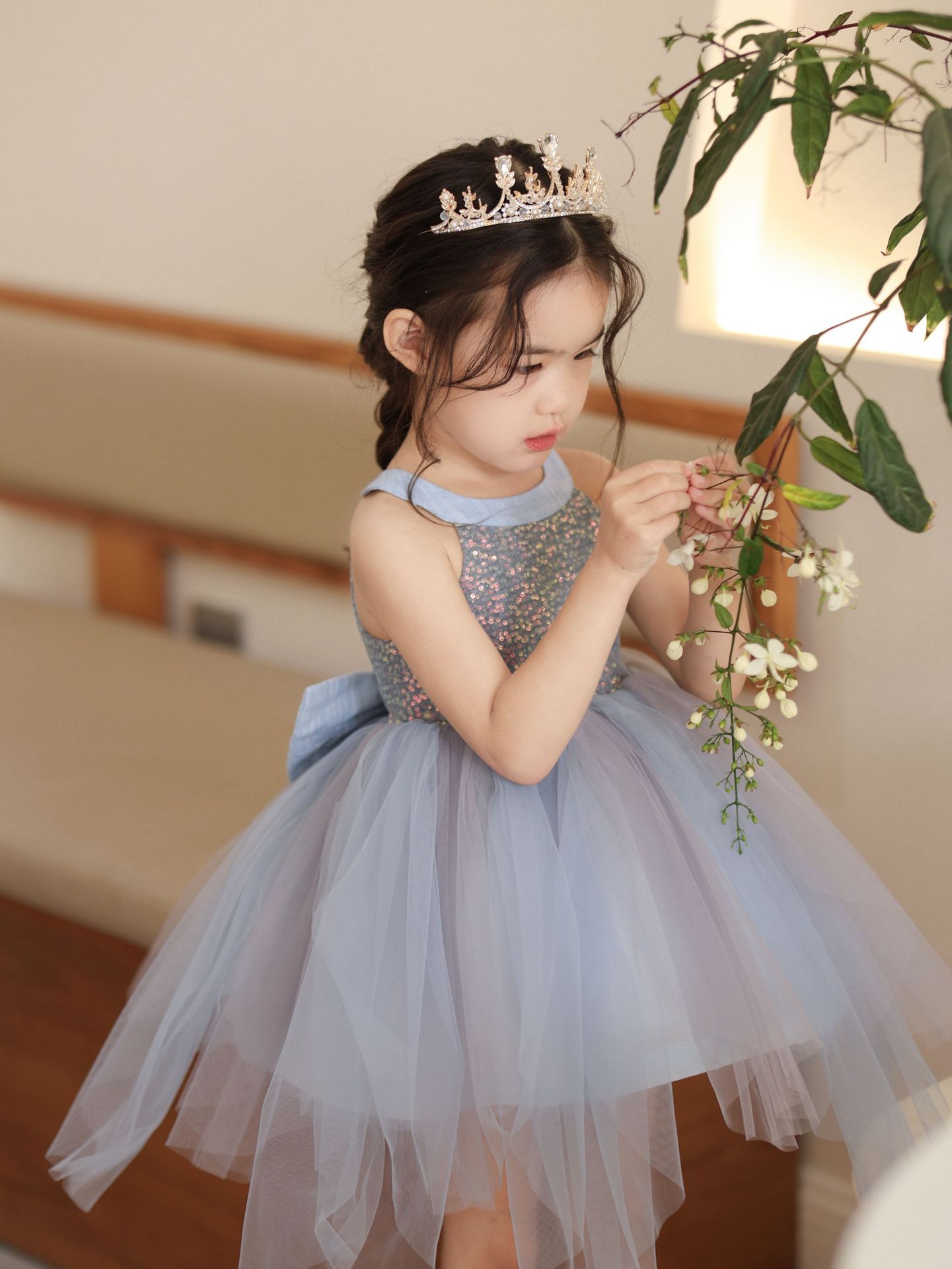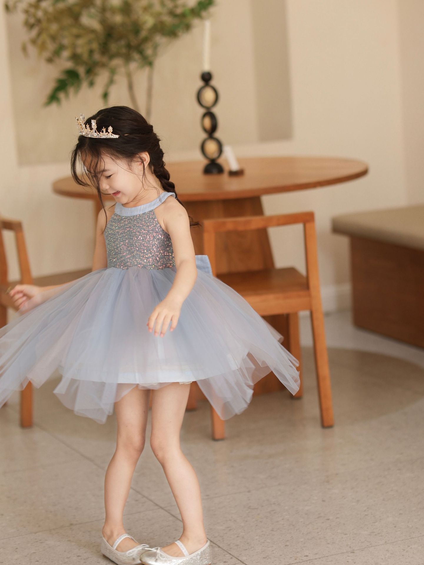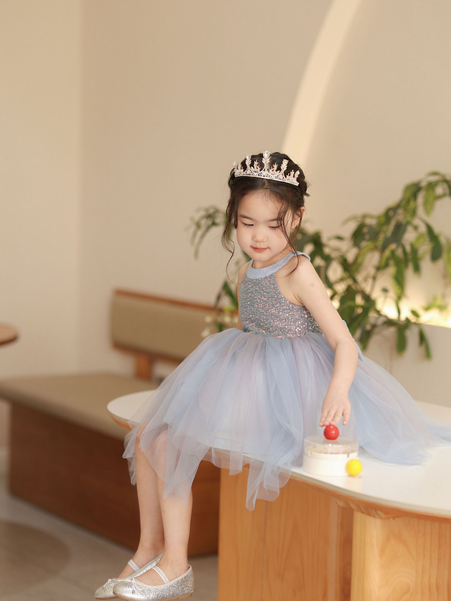 여자 아이샤 목 공주 원피스 2025 여름 새 소녀 블루 스팽글 메쉬 원피스 원피스 생일 원피스스토어 가기