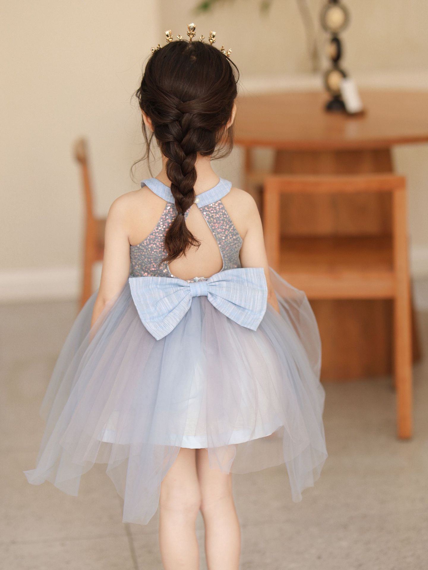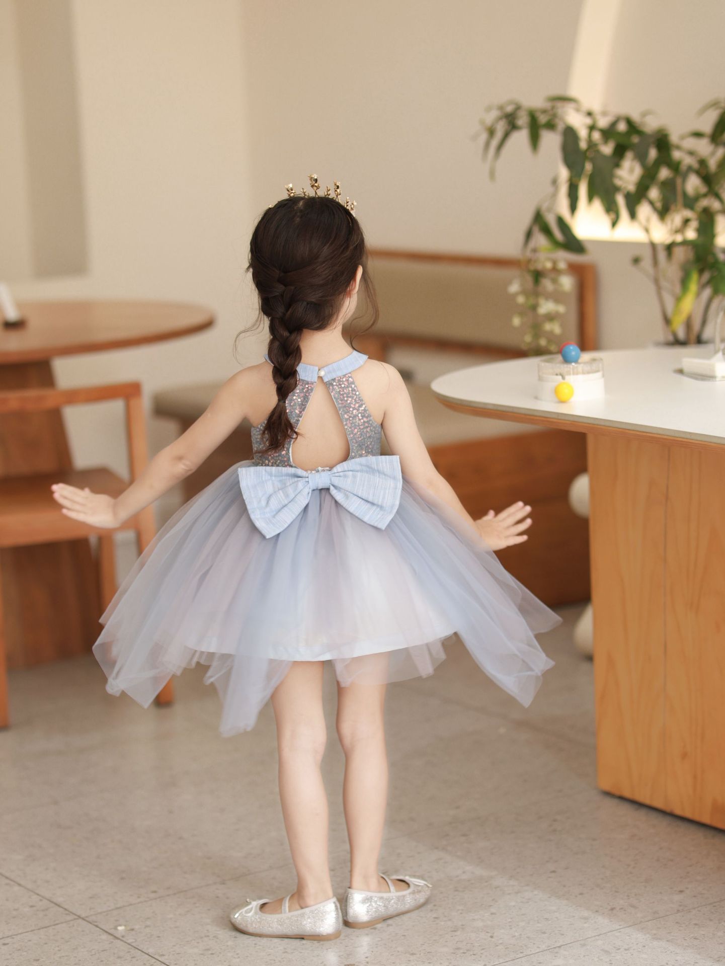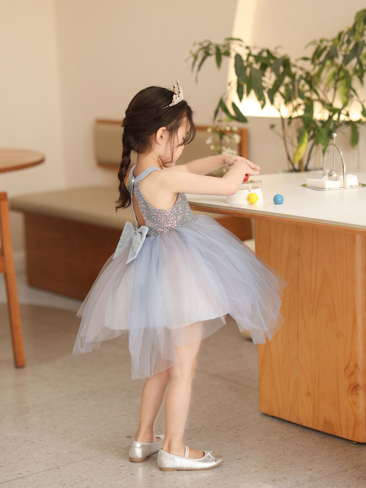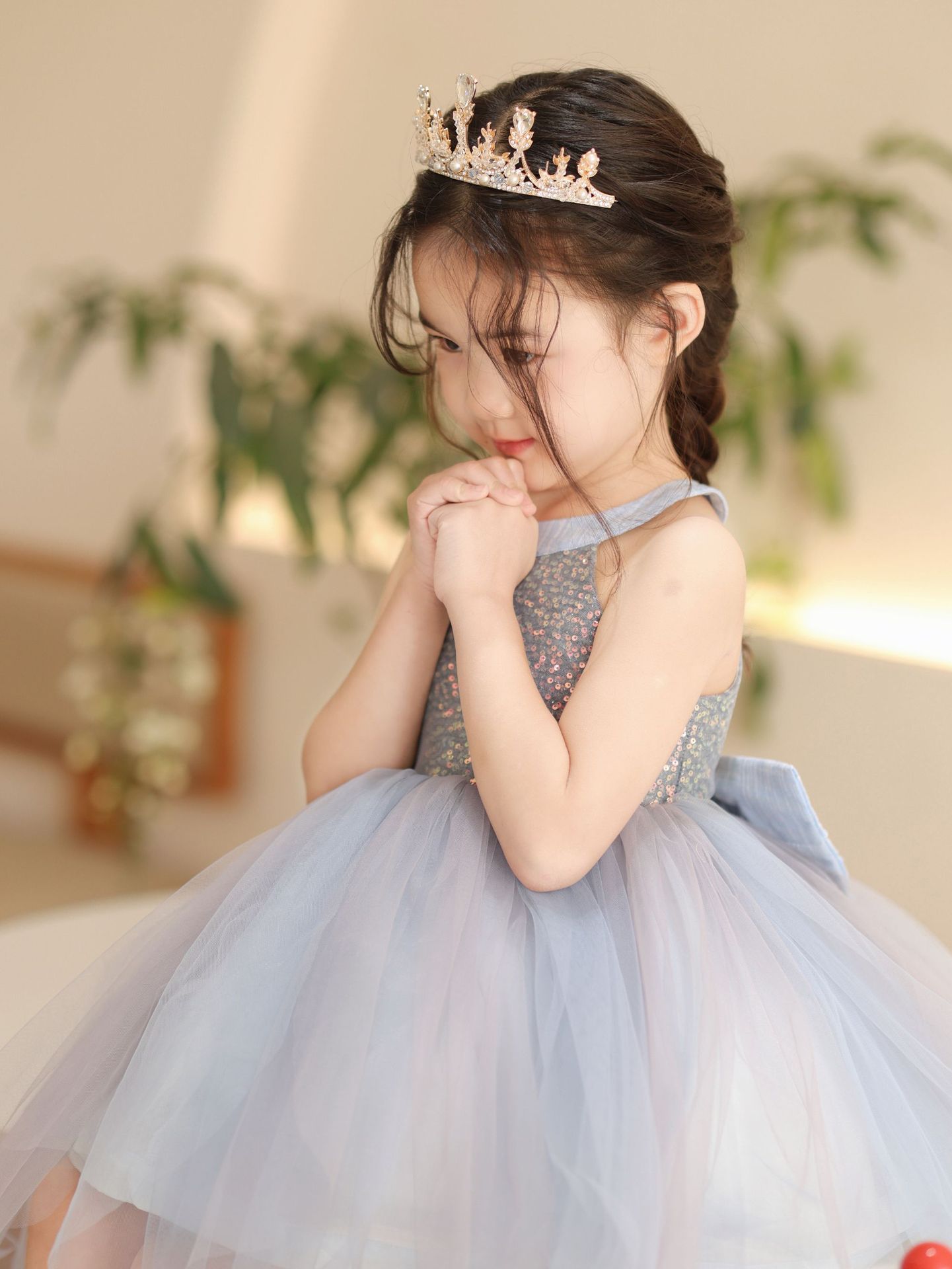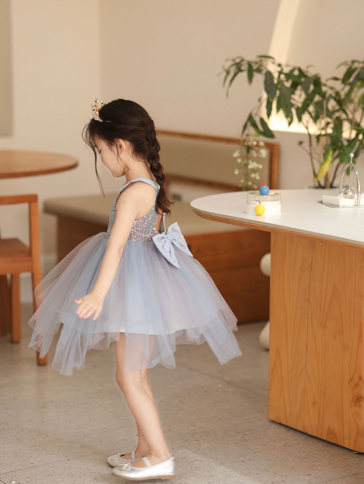 여자 아이샤 목 공주 원피스 2025 여름 새 소녀 블루 스팽글 메쉬 원피스 원피스 생일 원피스스토어 가기