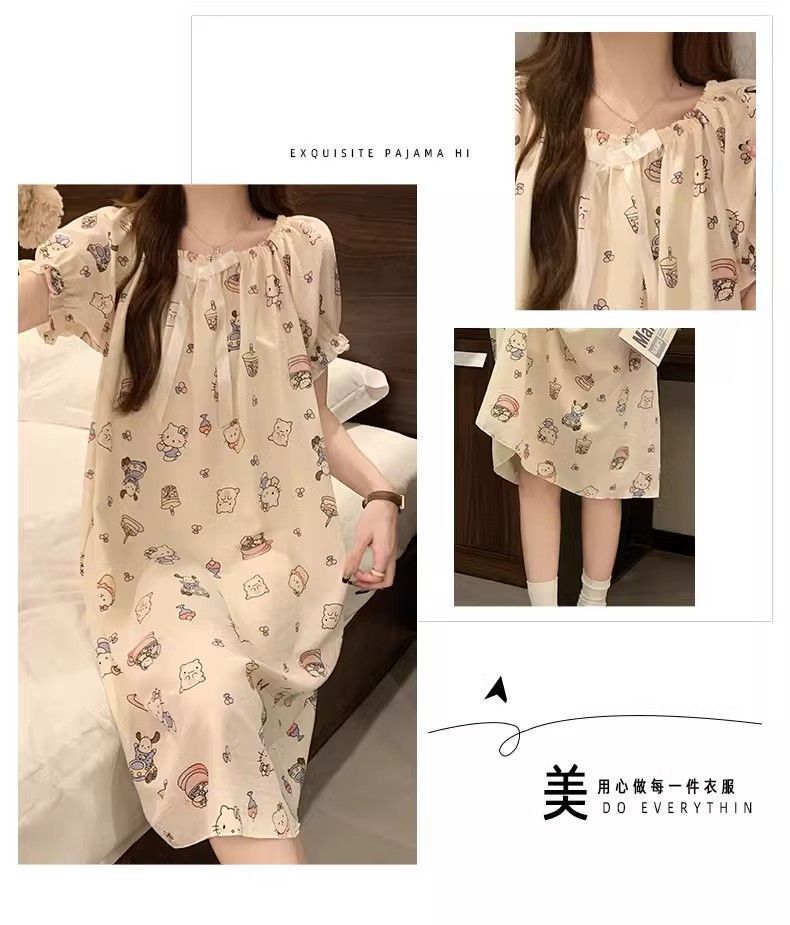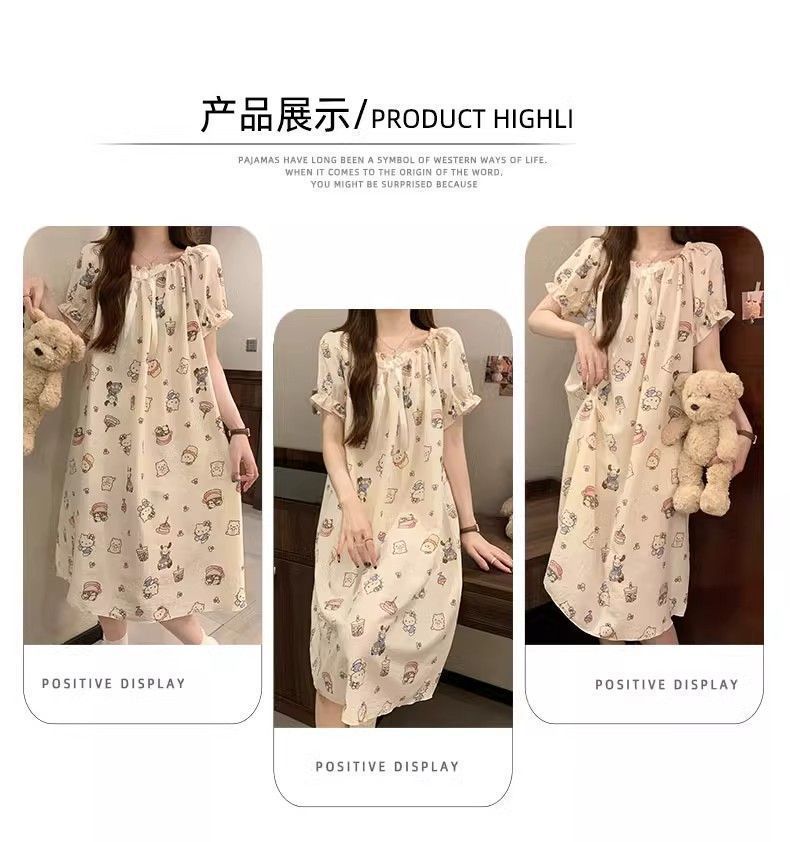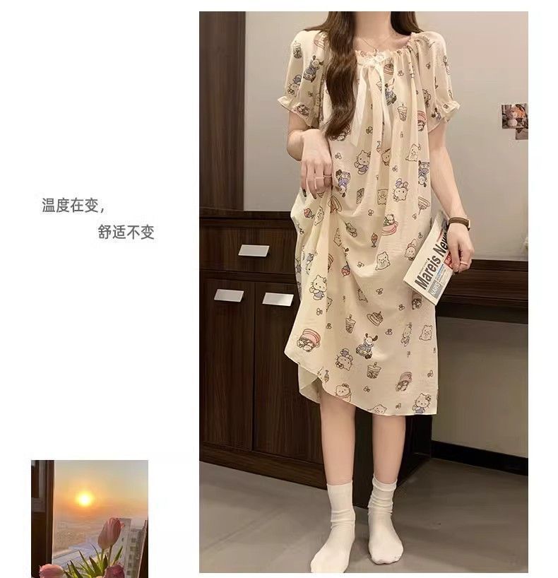 사랑스러운 고양이 반팔 나이트 드레스 여성의 나이트 드레스 2025 여름 새로운 구름 면 느슨한 홈 의류 외부 착용스토어 가기