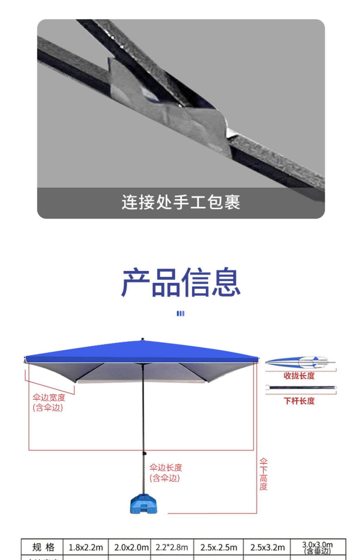파라솔 대형 우산 야외 매점 태양 우산 광고 우산 상업용 해변 안뜰 초대형 사각형 직사각형 접는 우산