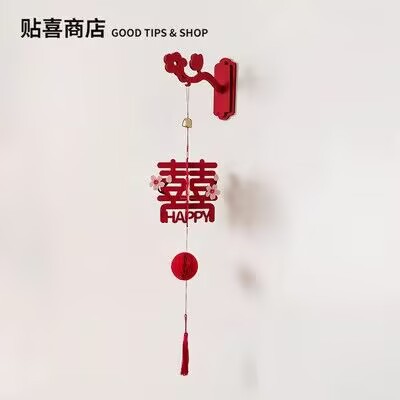 새로 결혼한 사람들의 행복한 말이 담긴 복숭아꽃 등불 펜던트, 축제 방 문 장식, 결혼식 분위기 소품, 벽걸이스토어 가기