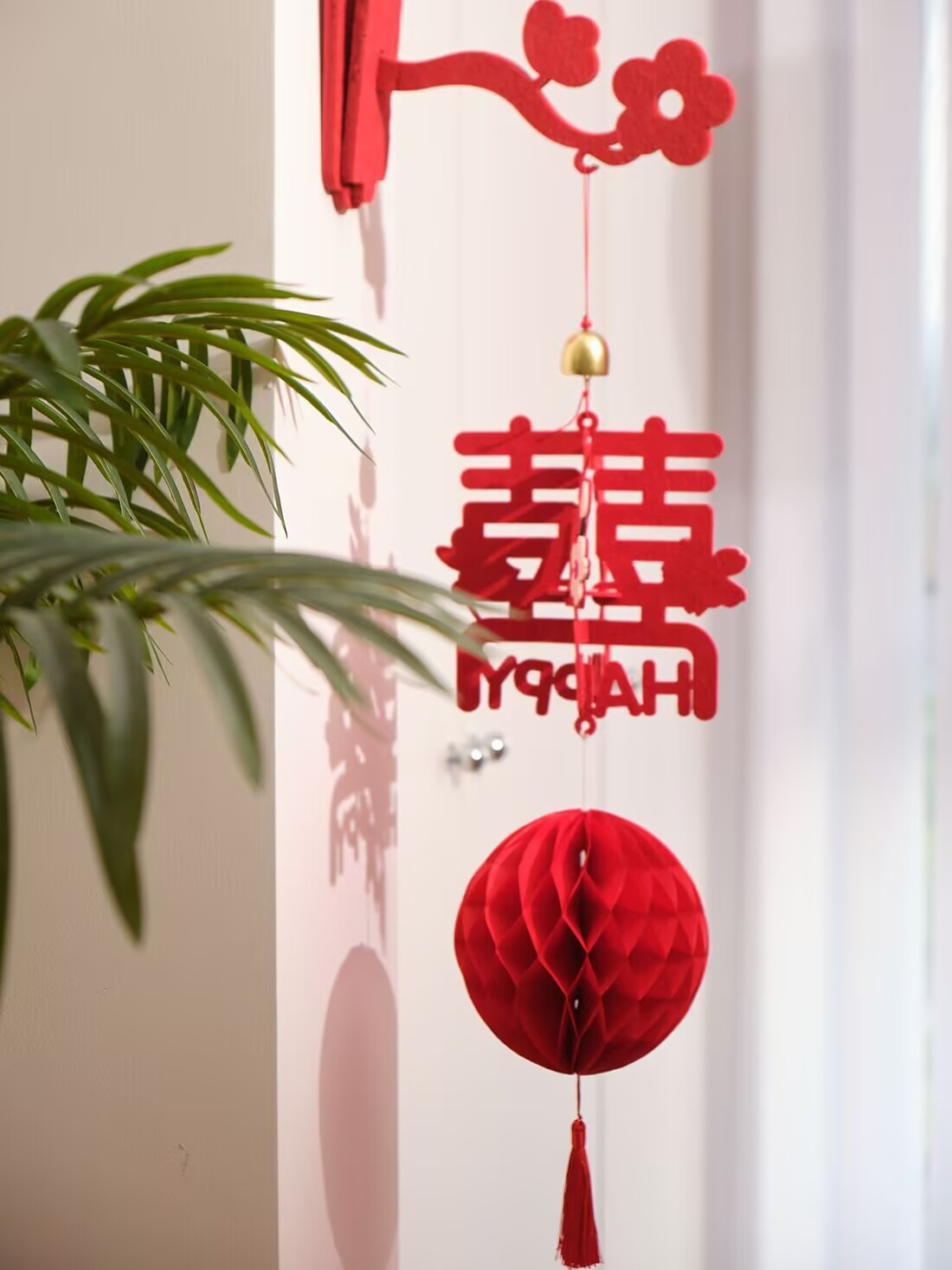 새로 결혼한 사람들의 행복한 말이 담긴 복숭아꽃 등불 펜던트, 축제 방 문 장식, 결혼식 분위기 소품, 벽걸이
