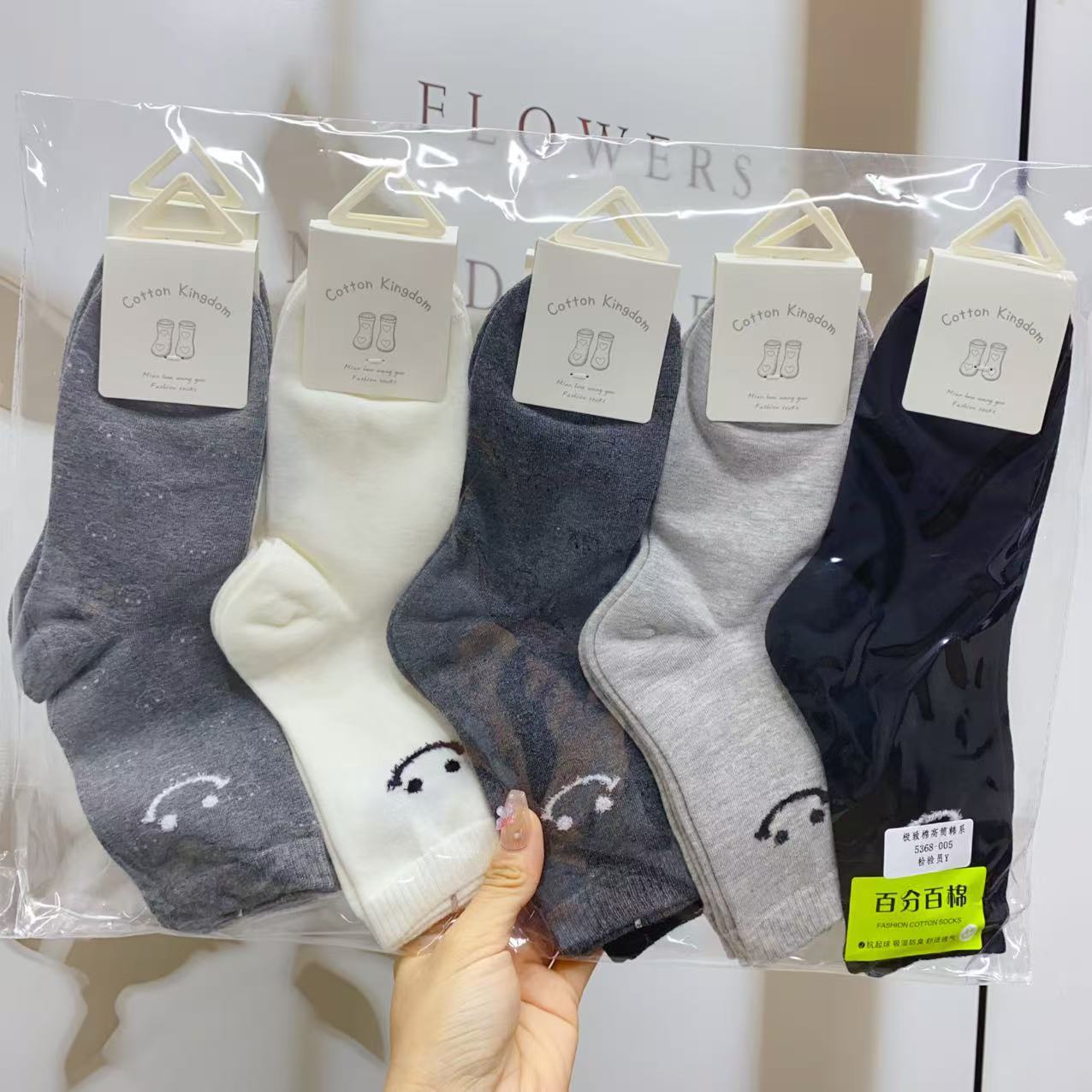 면화왕국 여성 양말 한국 스타일 중목 양말 심플하고 다용도로 활용 가능한 땀 흡수 양말 가을 신상 귀여운 여성 양말