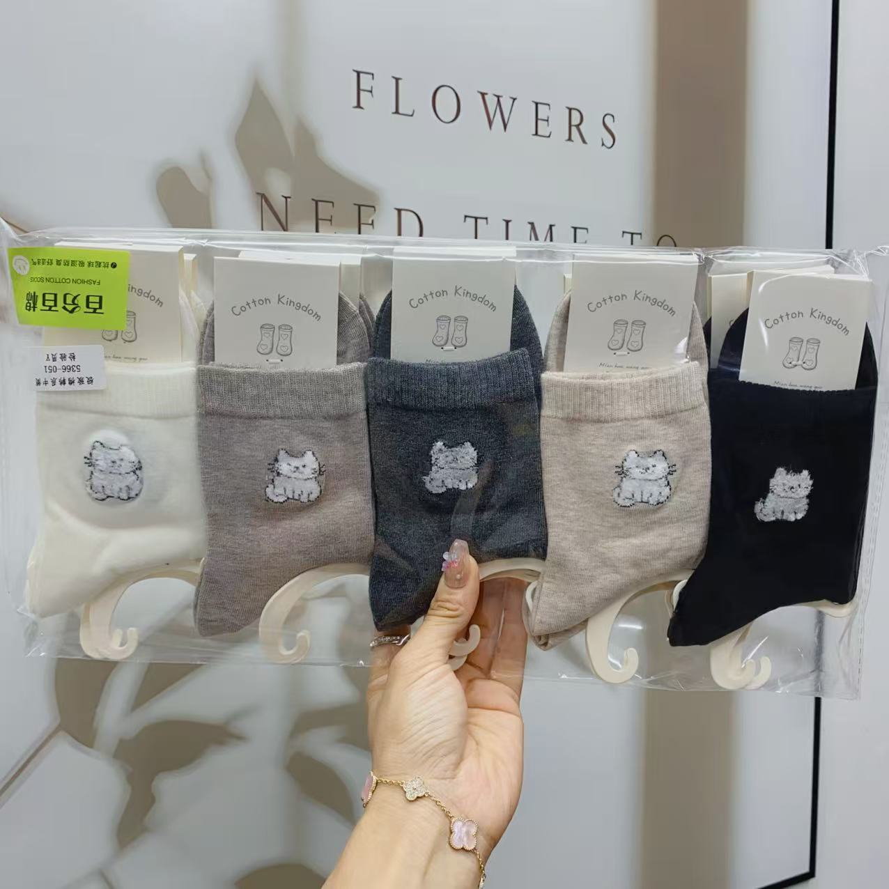 면화왕국 여성 양말 한국 스타일 중목 양말 심플하고 다용도로 활용 가능한 땀 흡수 양말 가을 신상 귀여운 여성 양말스토어 가기