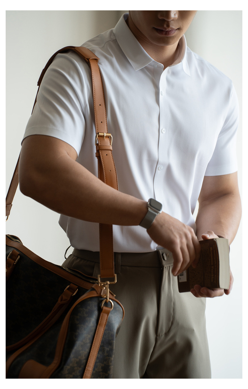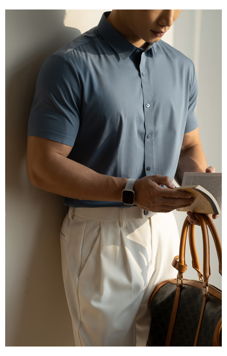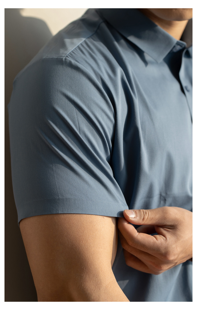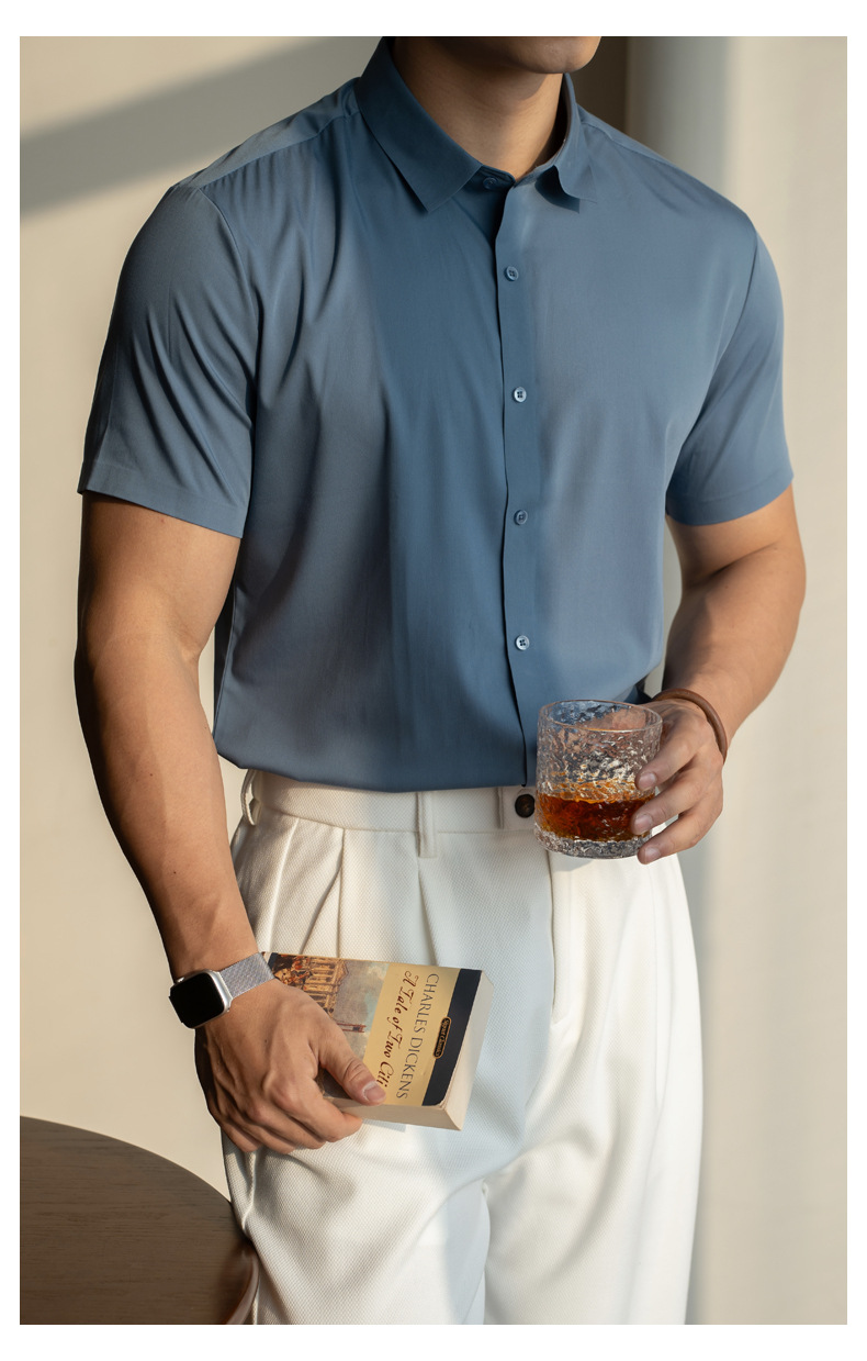 비 다림질 주름 방지 비 마킹 아이스 실크 쿨 티셔츠 반팔 셔츠 남자 2025 년 여름 신사업 통근 통기성 셔츠