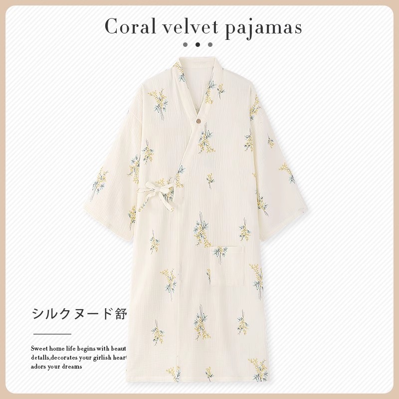 베이비 코튼 리넨 블린 난초 나이트가운 여성 여름 코튼 리넨 테더 일본 기모노 목욕 가운 잠옷 여름스토어 가기