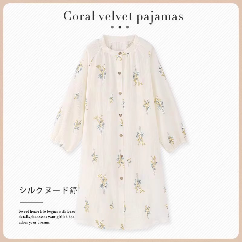 • 여름 은방울꽃 라운드 넥 나이트가운 [고급 버블 코튼]