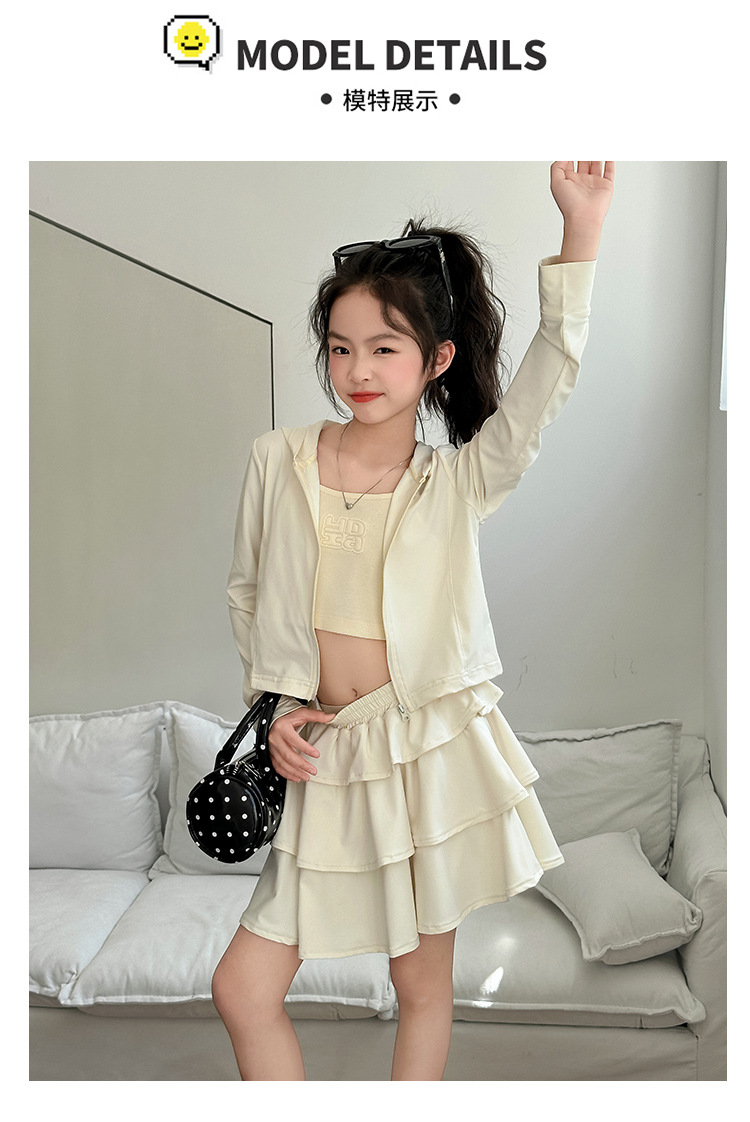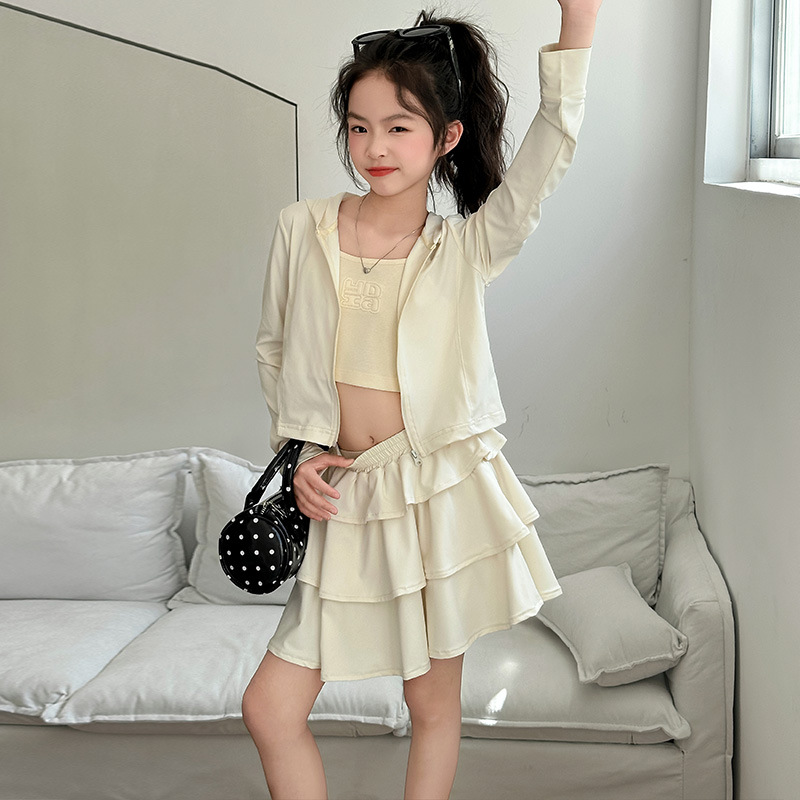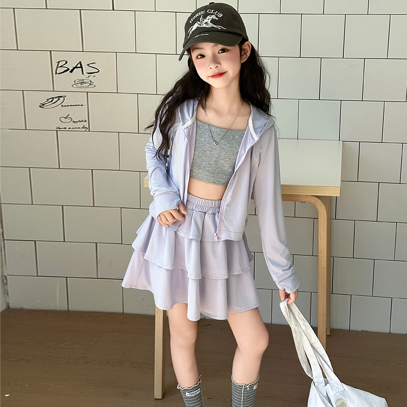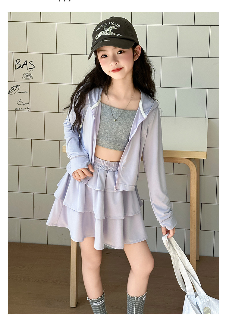 여자 여름 스포츠 태양 보호 의류 세트 2025 새로운 한국 스타일 케이크 푹신한 치마 세트 투피스 세트