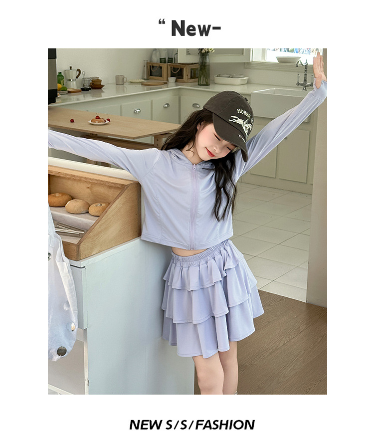 여자 여름 스포츠 태양 보호 의류 세트 2025 새로운 한국 스타일 케이크 푹신한 치마 세트 투피스 세트스토어 가기
