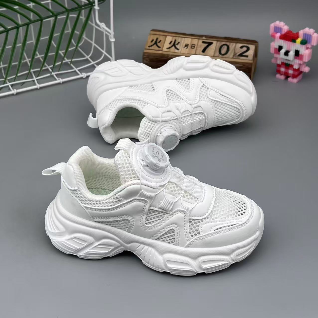 2025 봄 여름 새로운 스타일의 소년 소녀용 흰색 신발, 스포츠 아동화, 초경량 밑창 성능 아동화, 아빠 신발, 회전 버튼스토어 가기