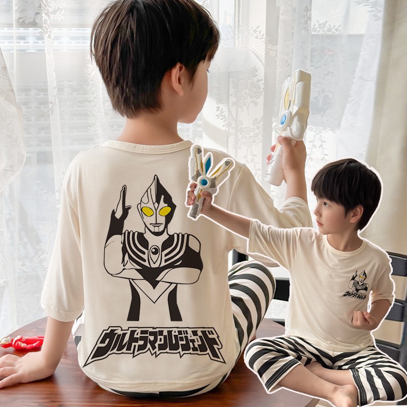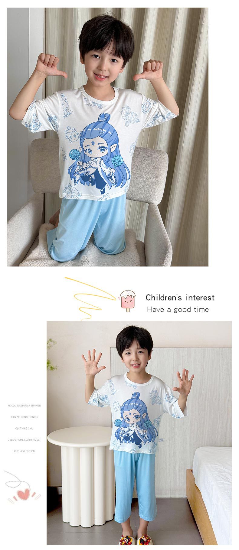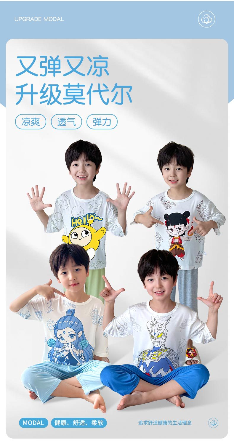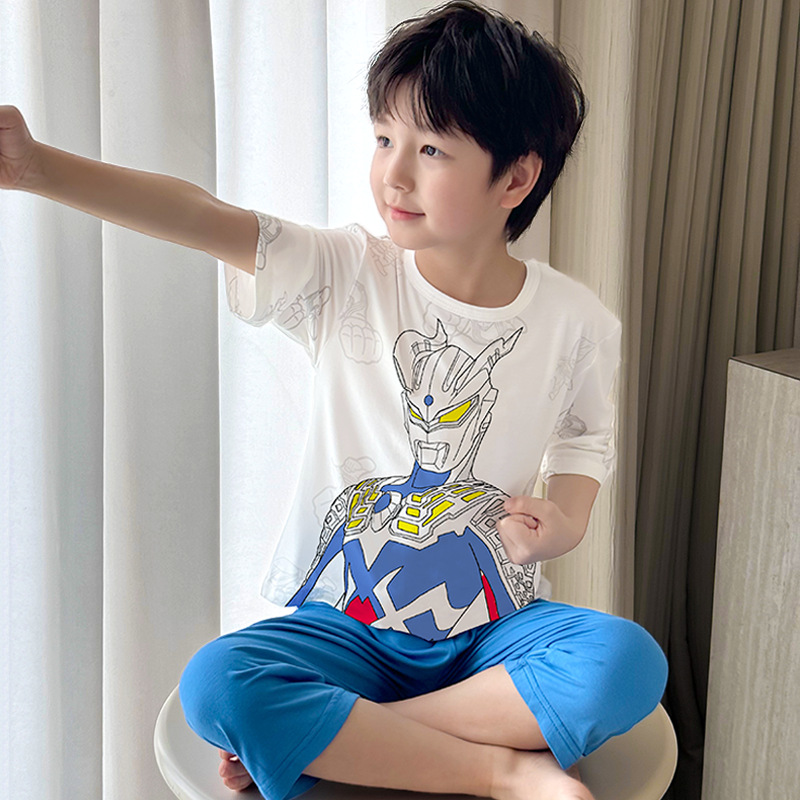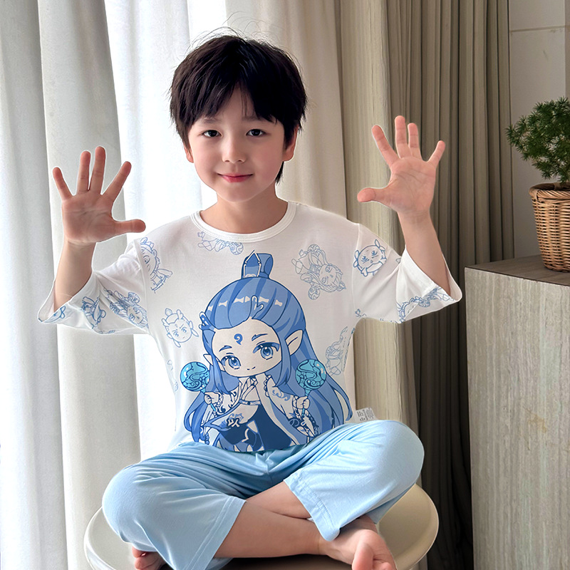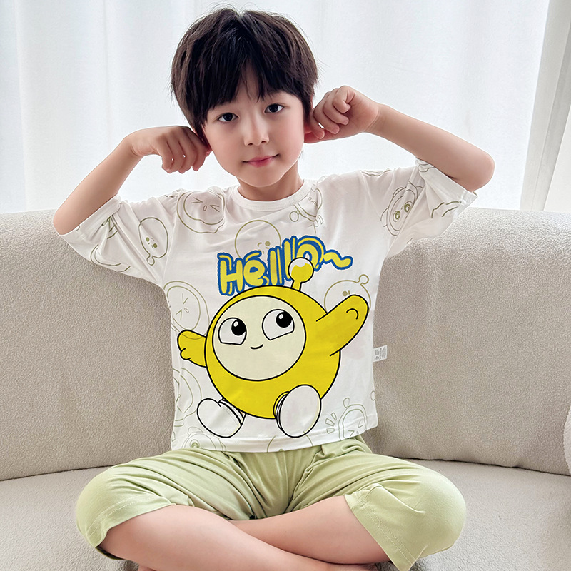 2025 여름 소년 잠옷 세트 홈 의류 아이스 쿨 소프트 세븐 슬리브 모달 베이비 에어컨 의류 세트스토어 가기