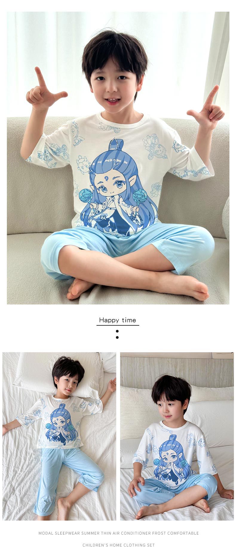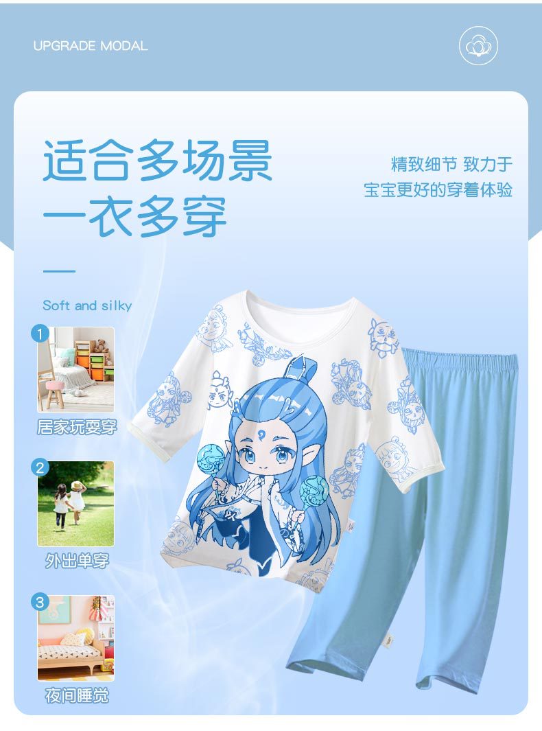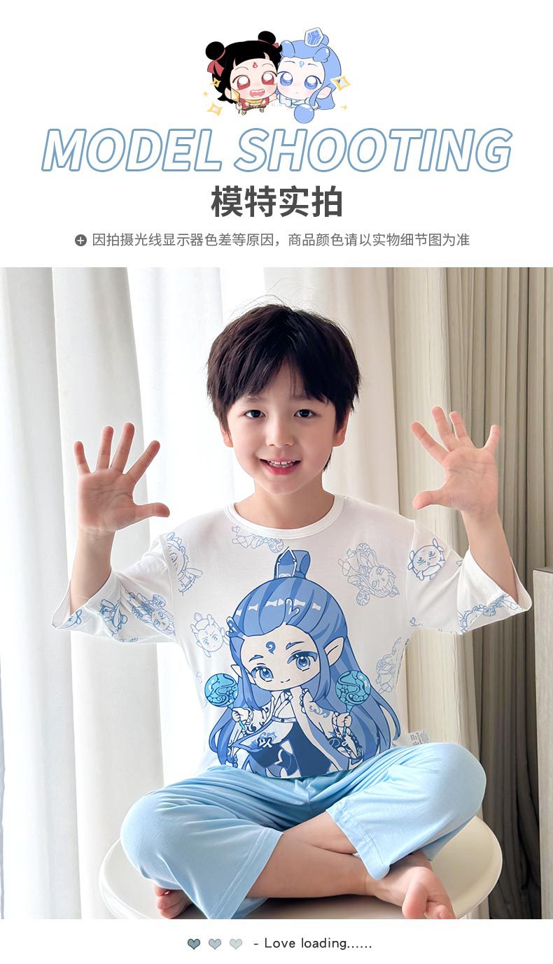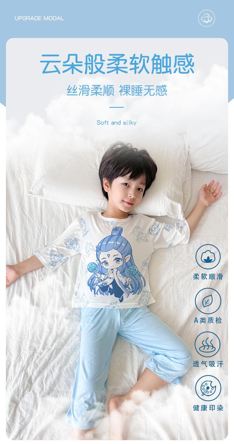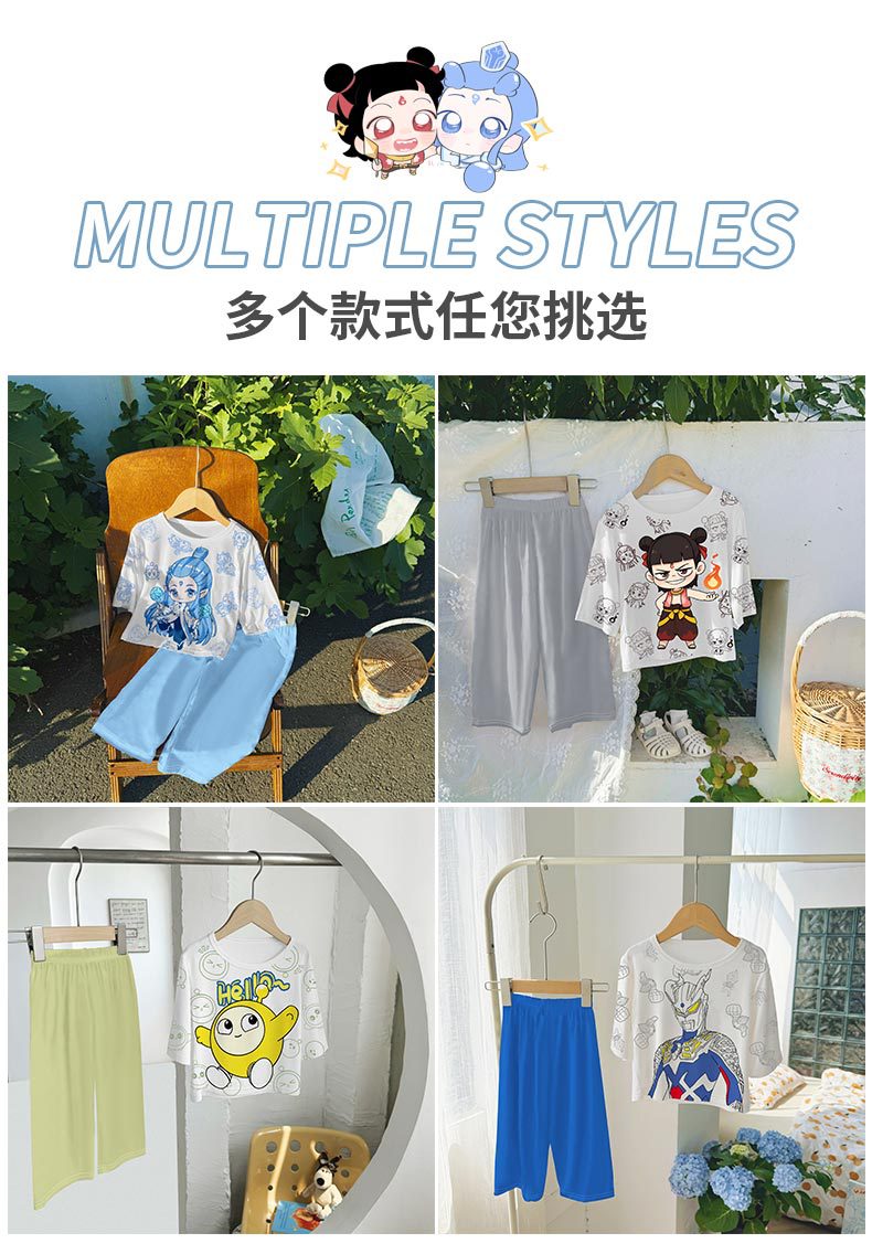 2025 여름 소년 잠옷 세트 홈 의류 아이스 쿨 소프트 세븐 슬리브 모달 베이비 에어컨 의류 세트스토어 가기