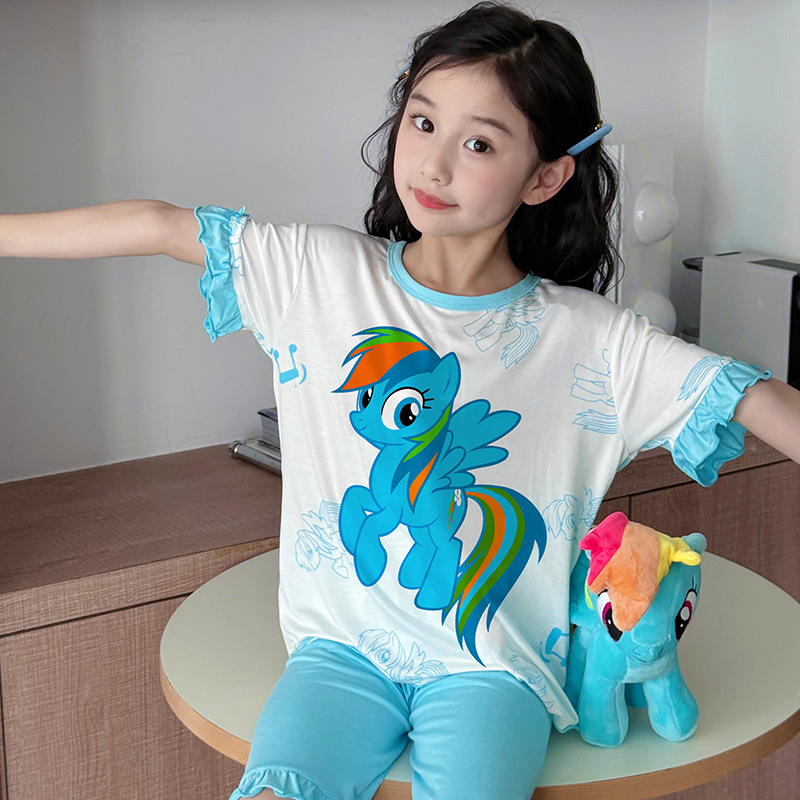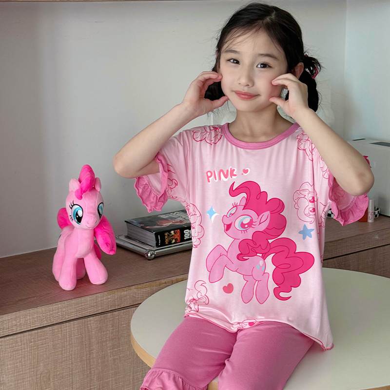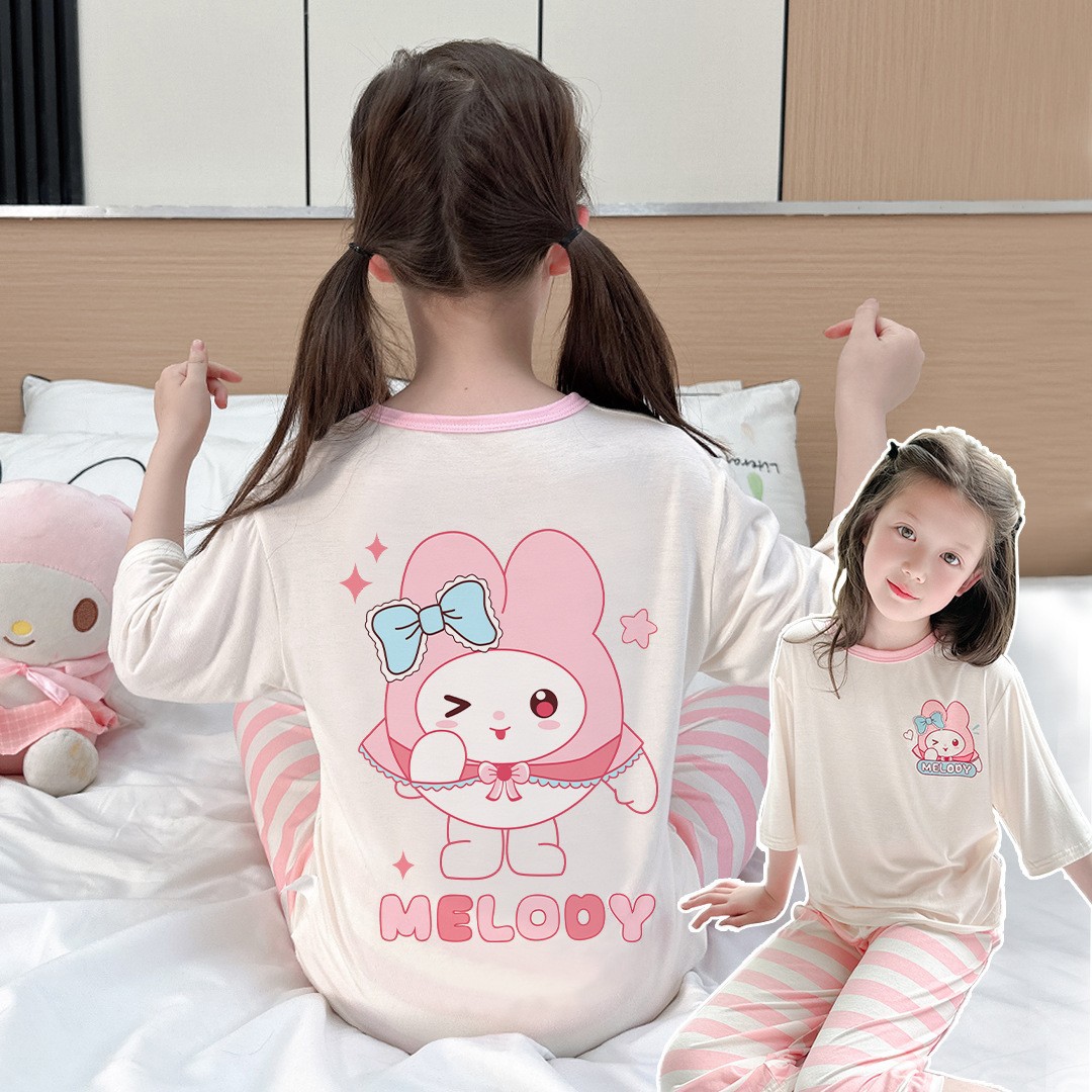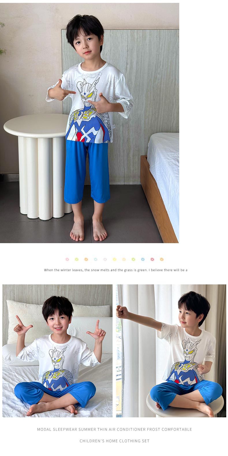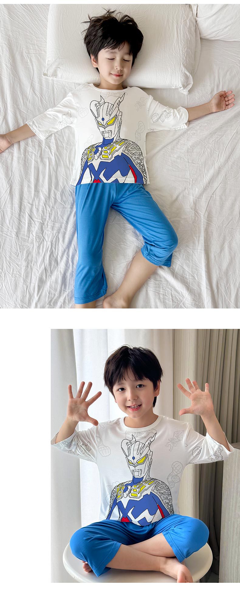 2025 여름 소년 잠옷 세트 홈 의류 아이스 쿨 소프트 세븐 슬리브 모달 베이비 에어컨 의류 세트스토어 가기