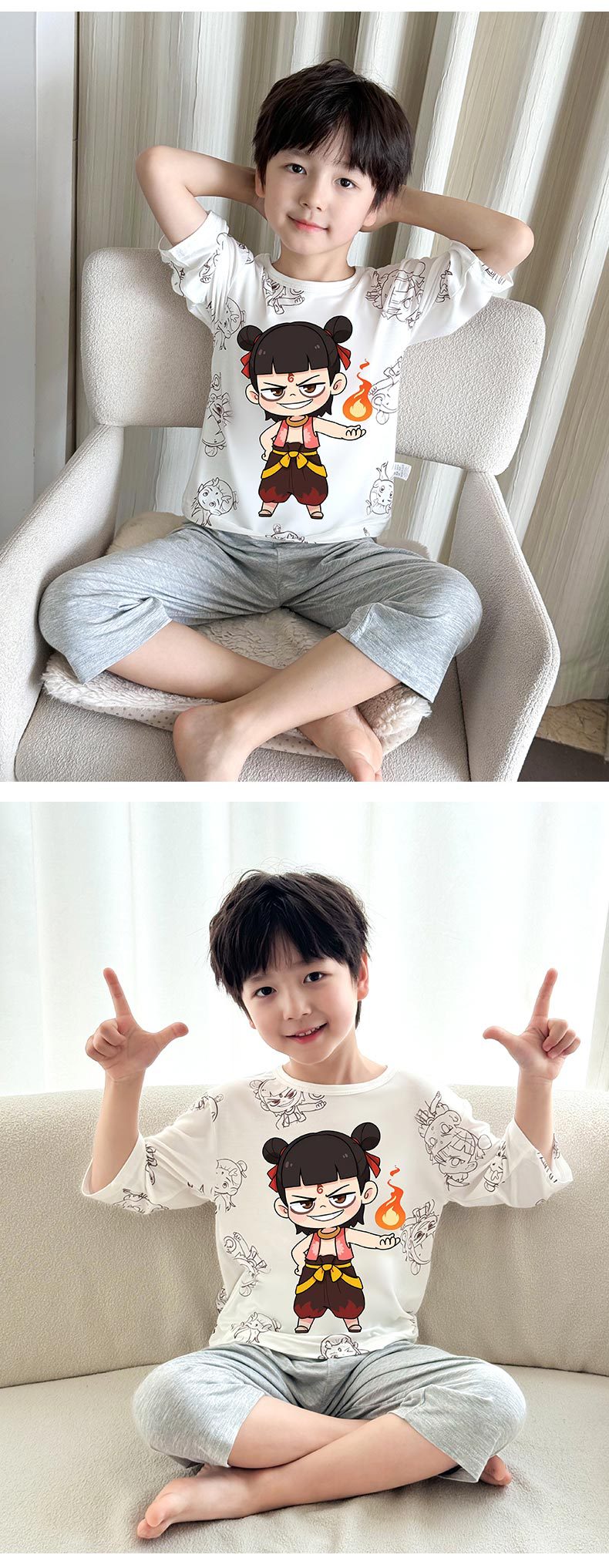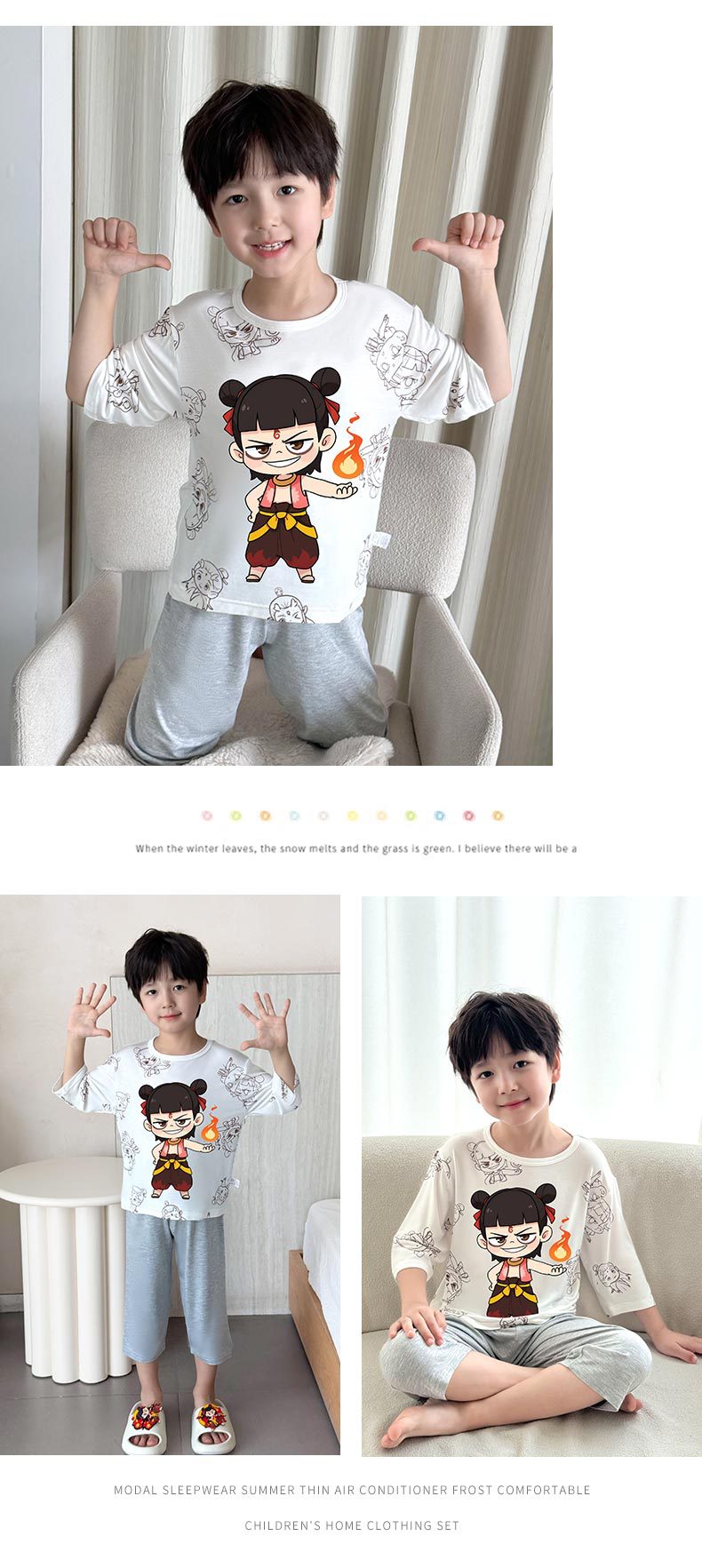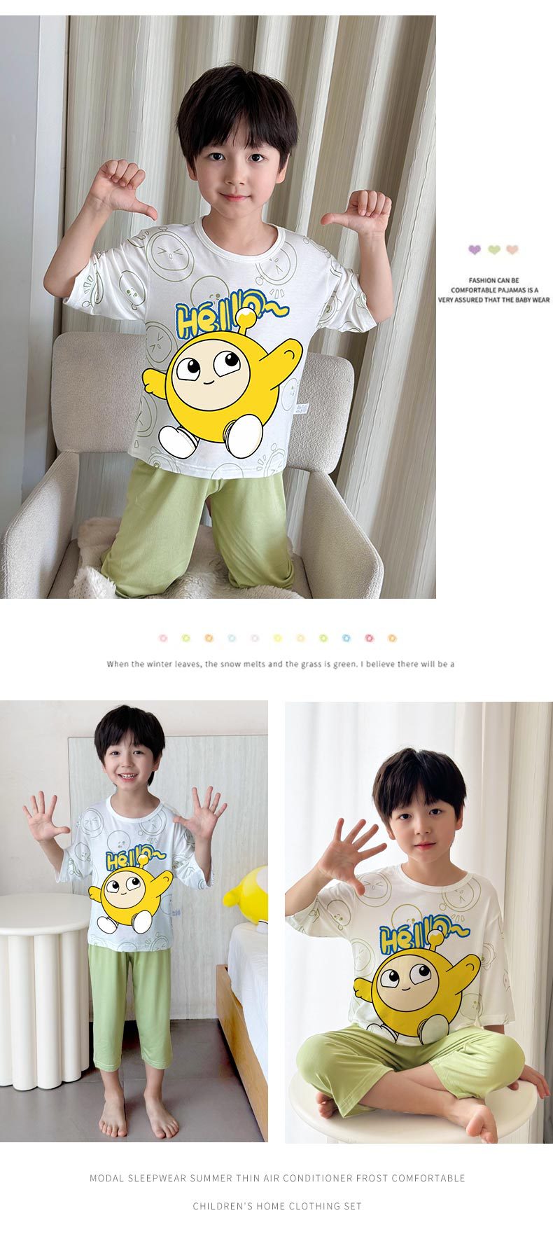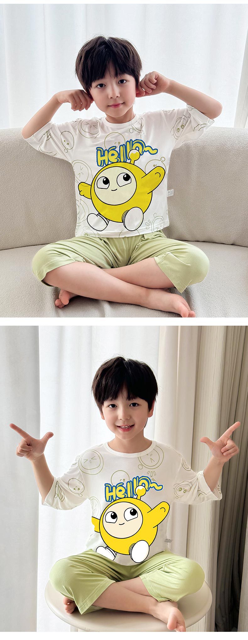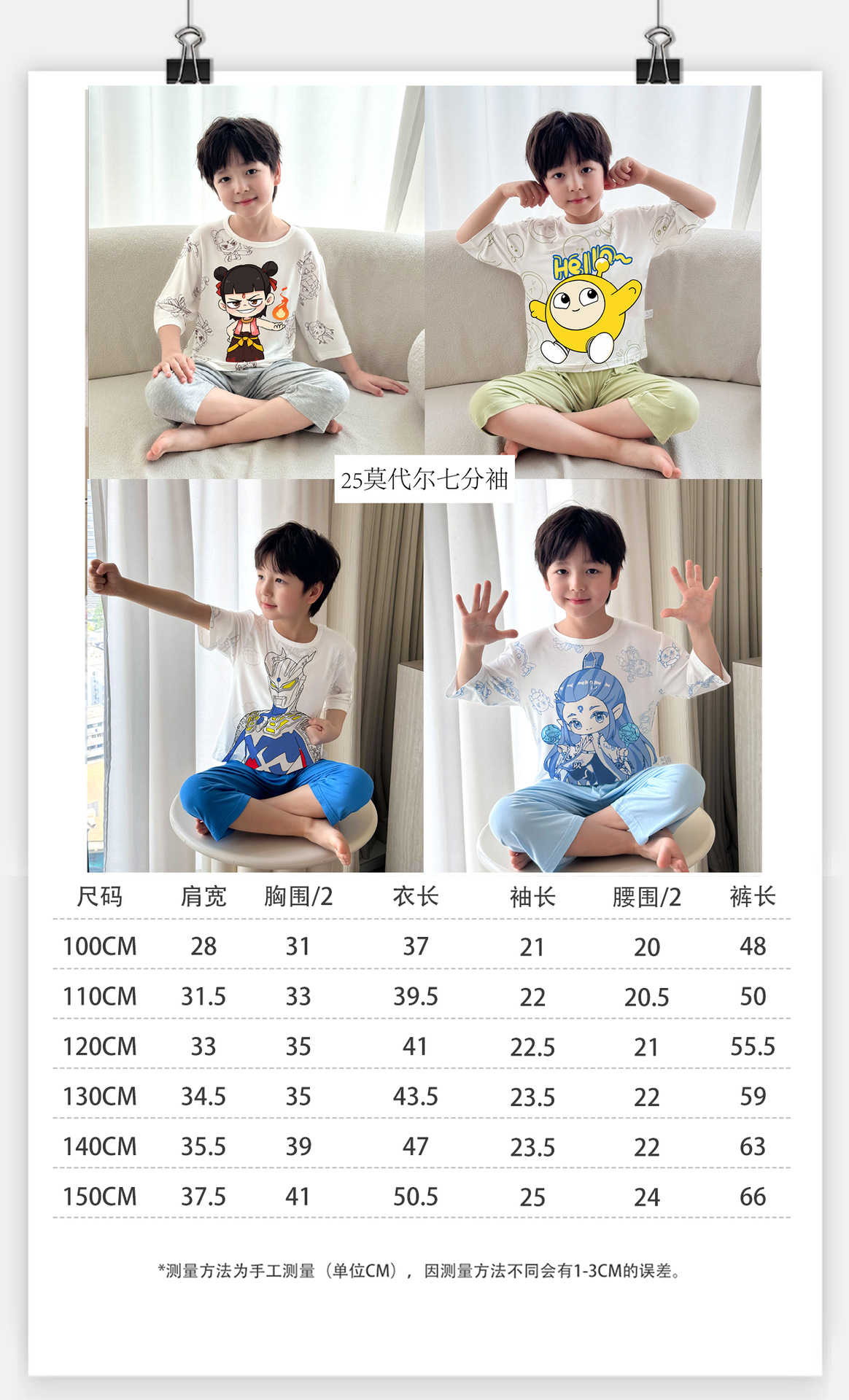 2025 여름 소년 잠옷 세트 홈 의류 아이스 쿨 소프트 세븐 슬리브 모달 베이비 에어컨 의류 세트스토어 가기