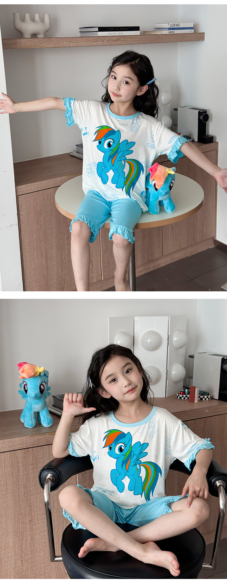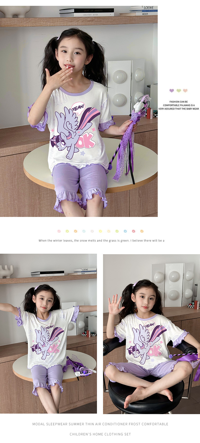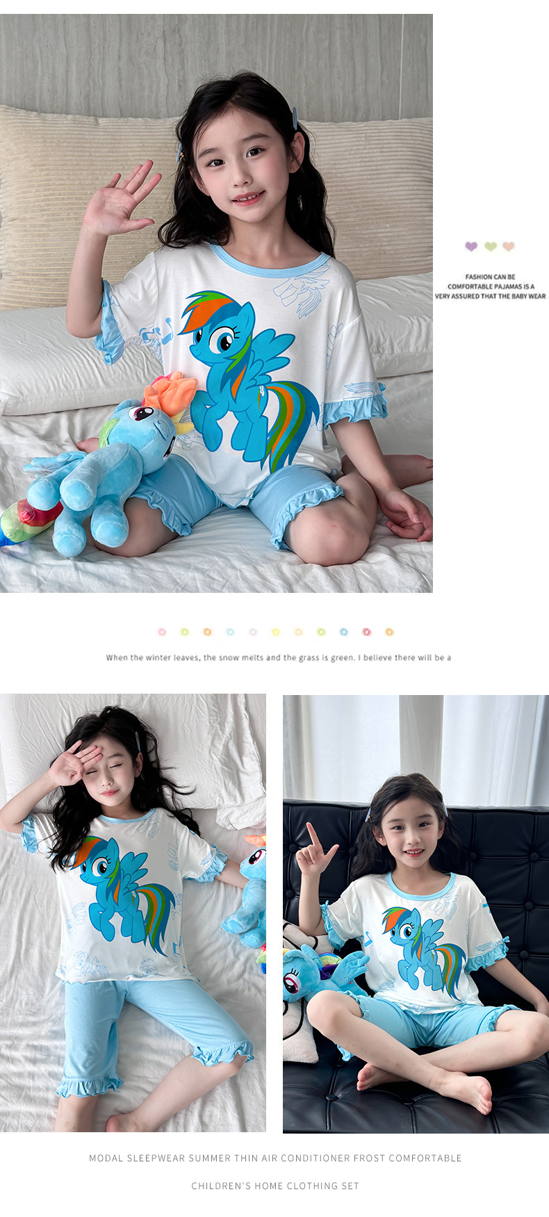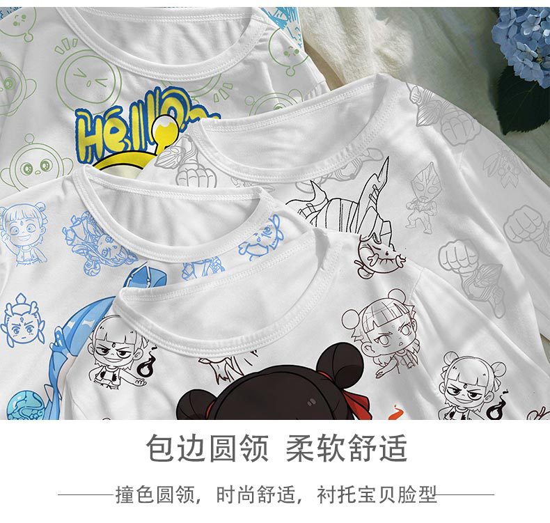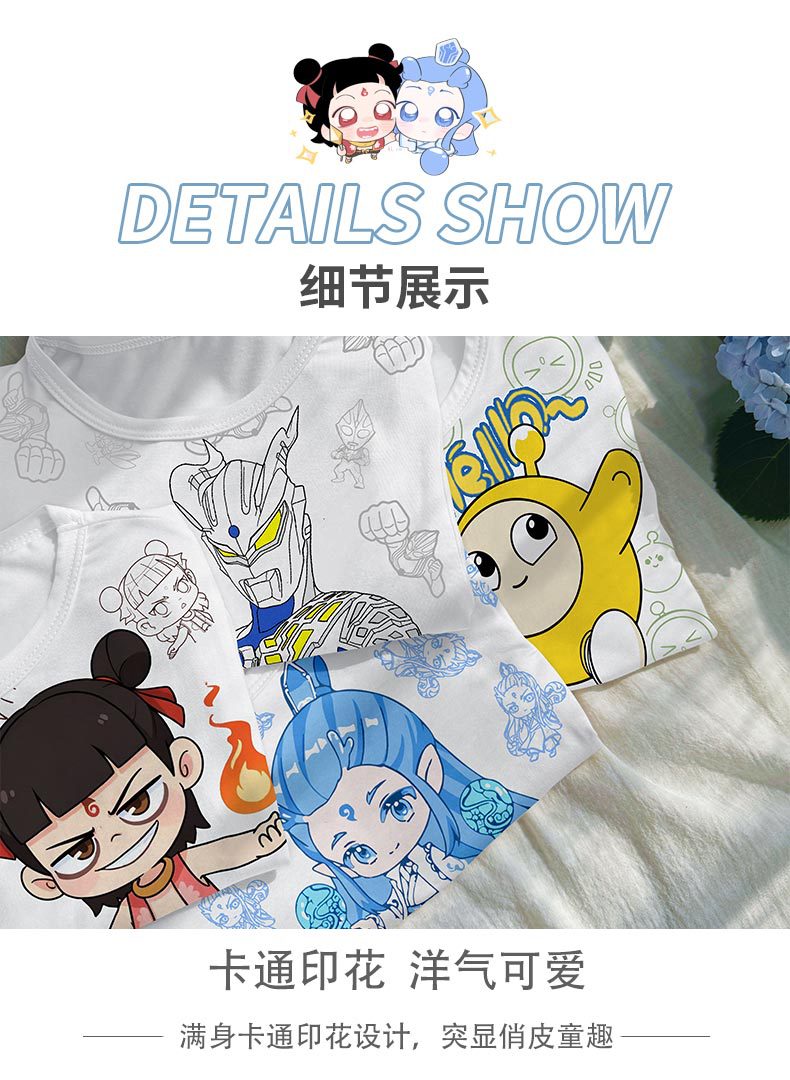 2025 여름 소년 잠옷 세트 홈 의류 아이스 쿨 소프트 세븐 슬리브 모달 베이비 에어컨 의류 세트스토어 가기