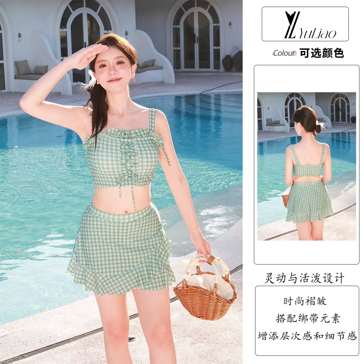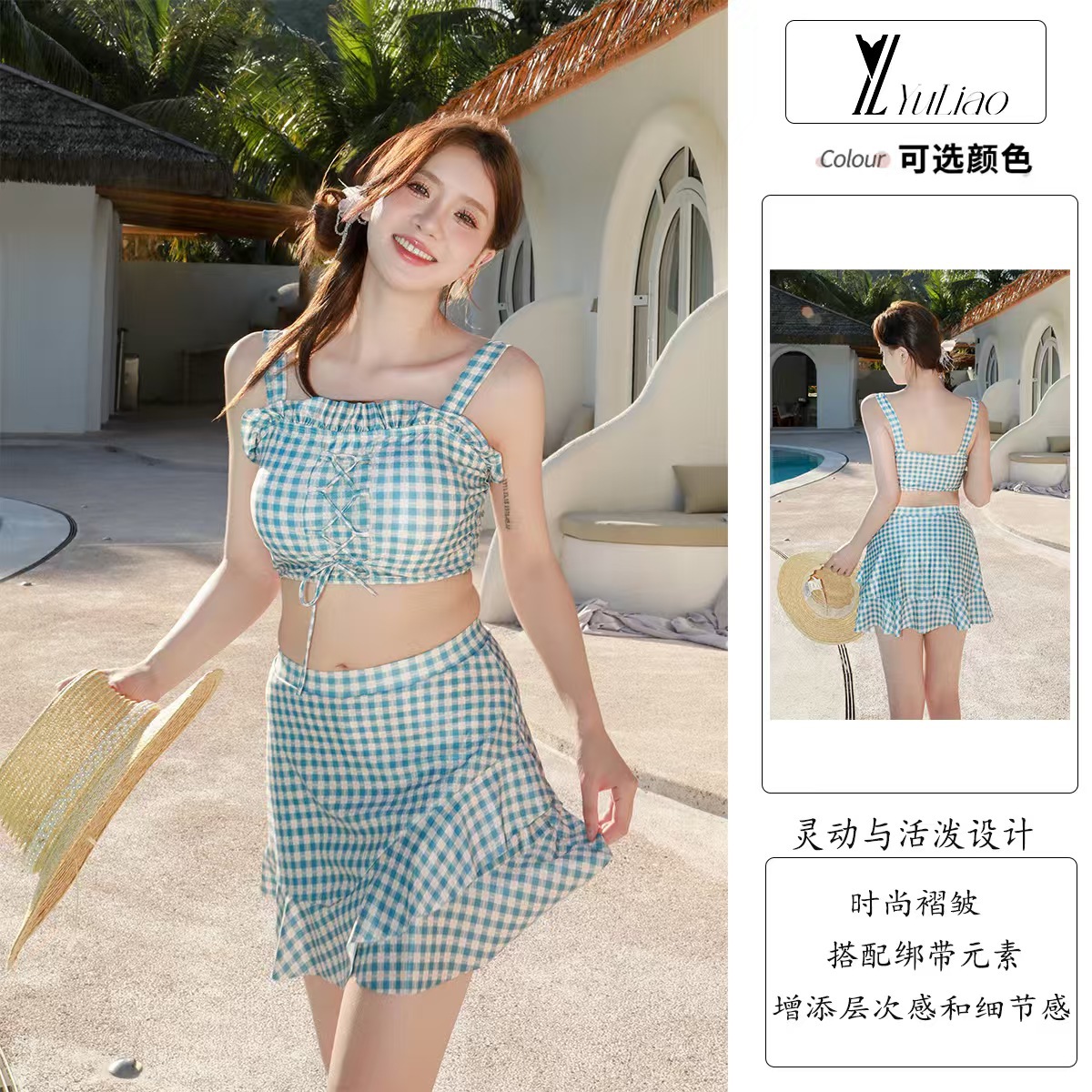 여성 수영복 2025 새로운 스플릿 보수적 배 커버 슬리밍 하이 웨이스트 복서 스커트 투피스 스타일 온천 휴가 수영복스토어 가기