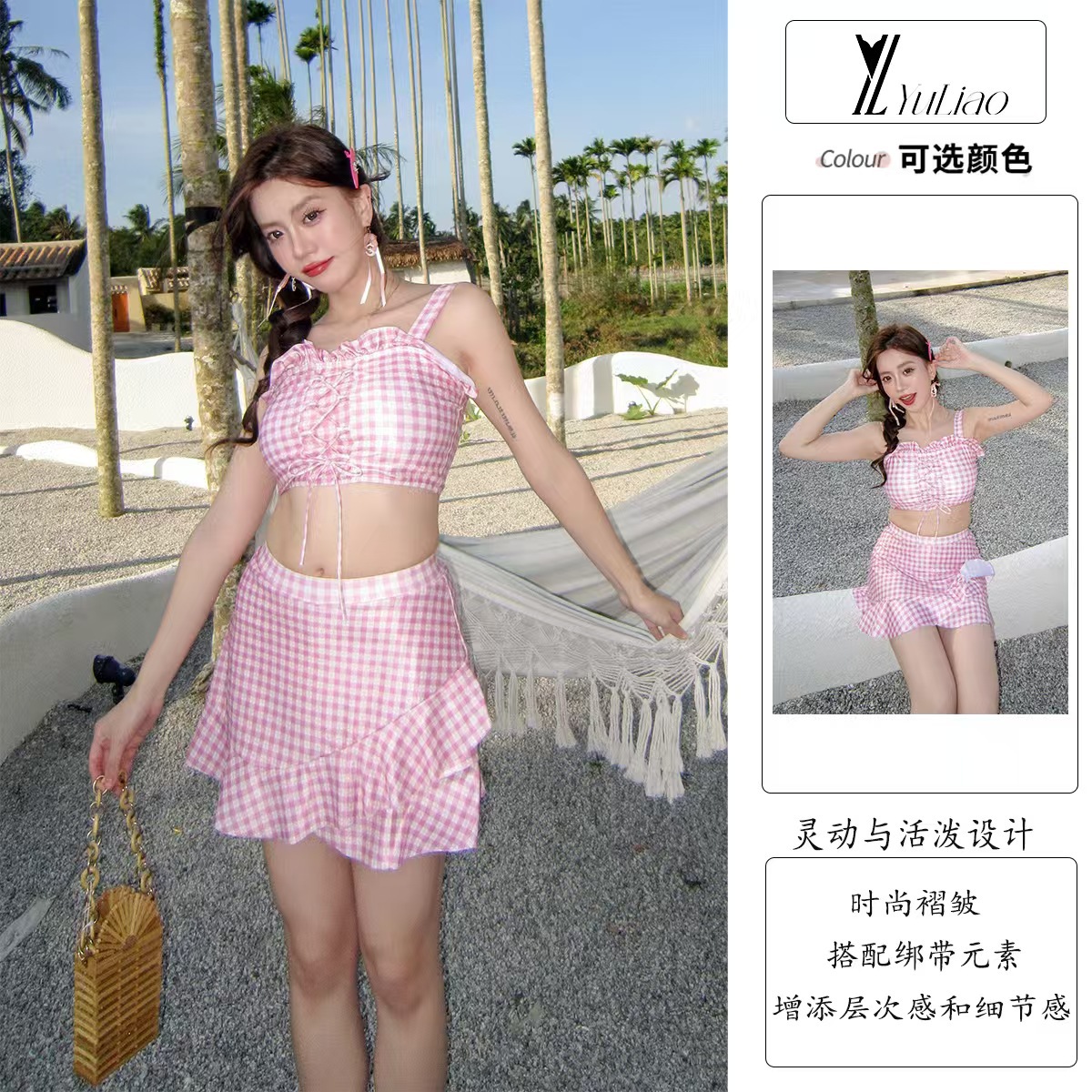 여성 수영복 2025 새로운 스플릿 보수적 배 커버 슬리밍 하이 웨이스트 복서 스커트 투피스 스타일 온천 휴가 수영복